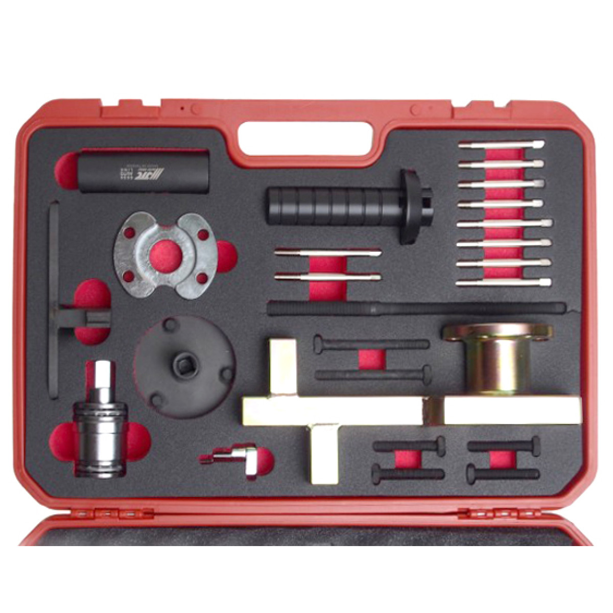 Профессиональный набор JTC 6680 предназначен для фиксации и обслуживания двигателей Jaguar и Land Rover объёмом 3.0 л V6 и 5.0 л V8. Используется при демонтаже переднего шкива коленчатого вала (демпфера крутильных колебаний), установке сальника, фиксации маховика и выполнении других регламентных работ.