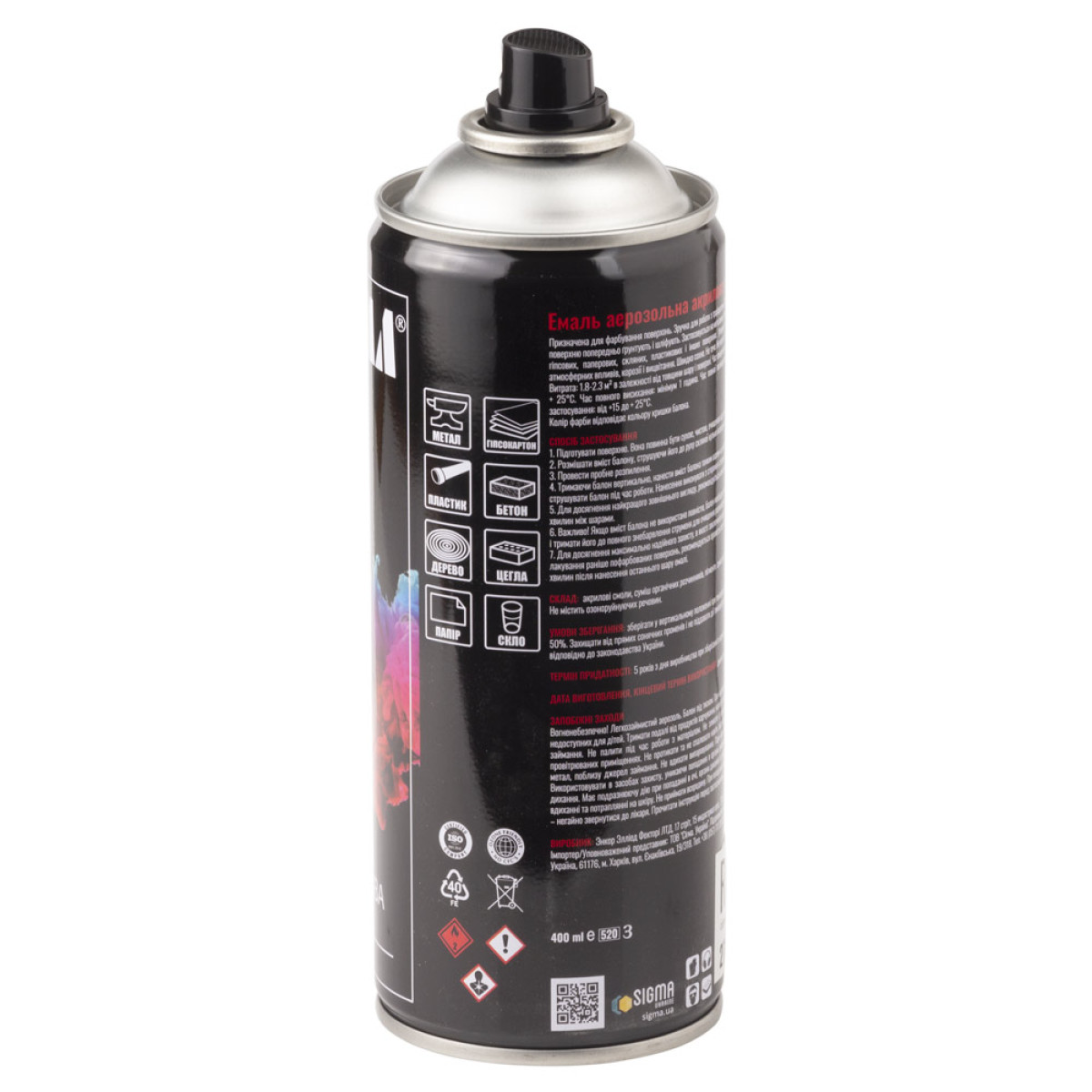 Емаль аерозольна акрилова 400мл RAL 8019 сіро-коричневий глянець SIGMA (2736731) - 2736731
