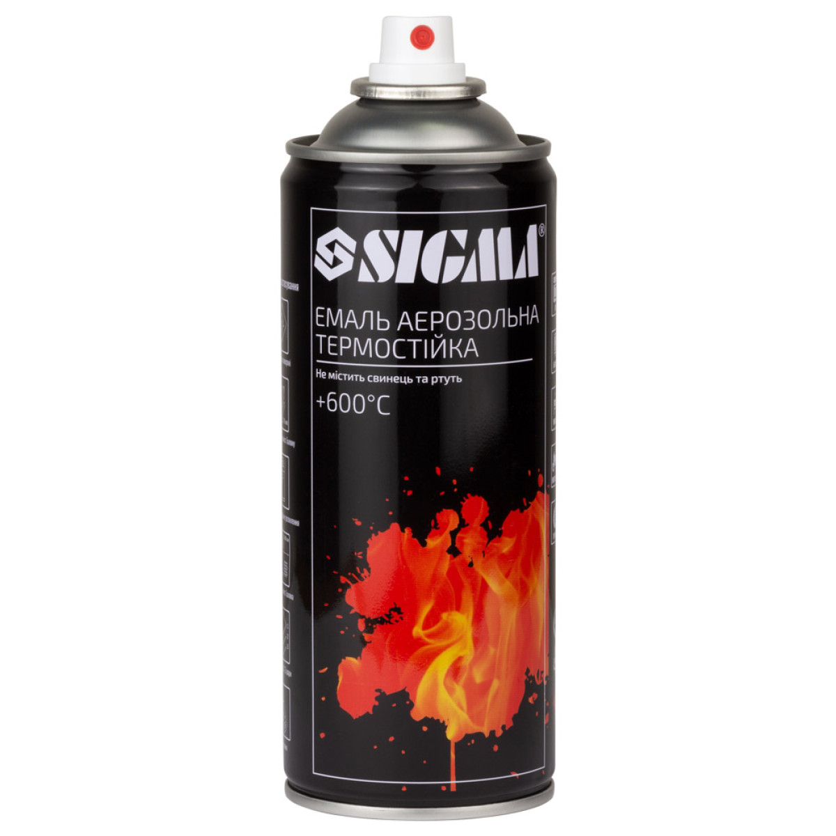 Емаль аерозольна акрилова термостійка +600°C 400мл RAL 9005 чорний мат SIGMA (2736041) - 2736041