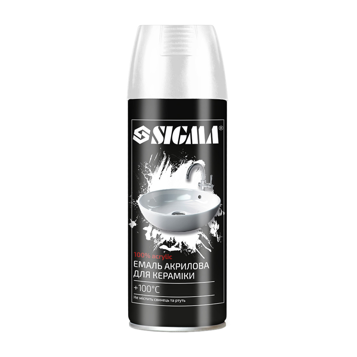 Емаль аерозольна акрилова термостійка для кераміки +100°C 400мл білий глянець SIGMA (2736421) - 2736421