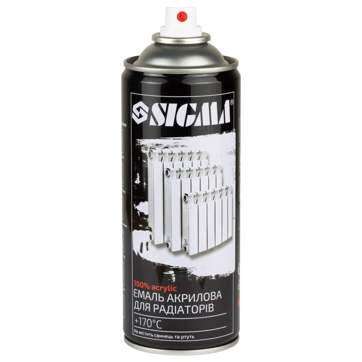 Емаль аерозольна акрилова термостійка для радіаторів +170°C 400мл RAL 9010 білий глянець SIGMA (2736411) - 2736411