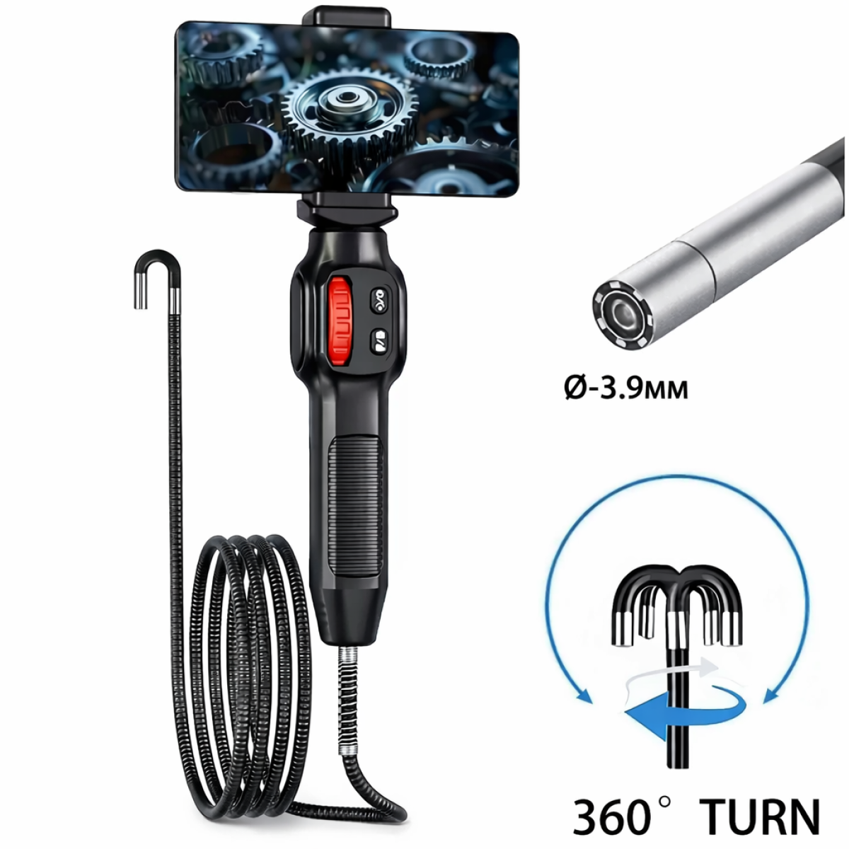 бороскоп 3.9 мм, эндоскоп Type-C OTG, камера эндоскоп для смартфона, U200-3.9мм-1м, бороскоп с шарнирным зондом 180°, эндоскоп IP67, камера для осмотра труб