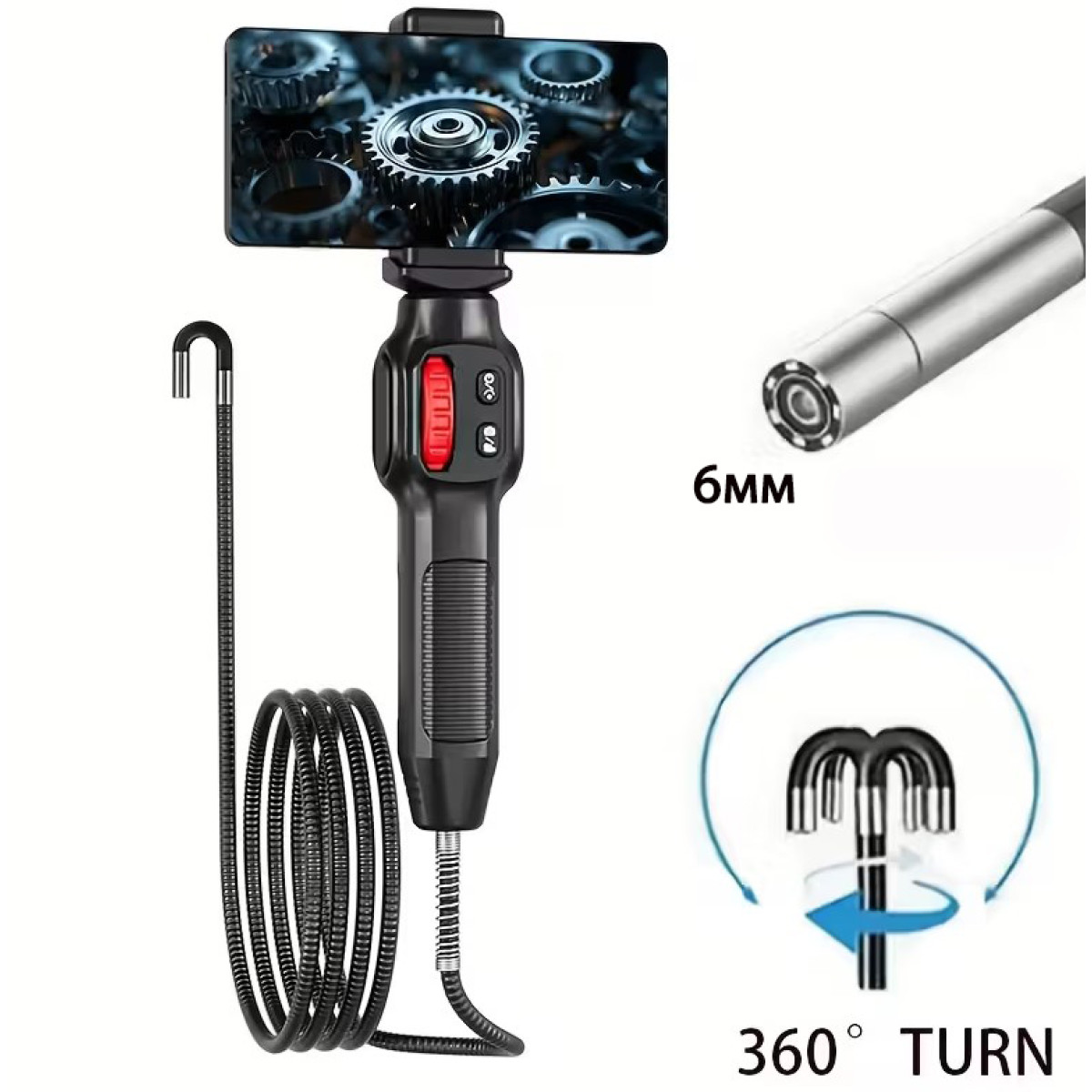 Бороскоп с камерой 6 мм и шарнирным зондом 180° U200-6мм-1м (Type-C, iOS/Android)