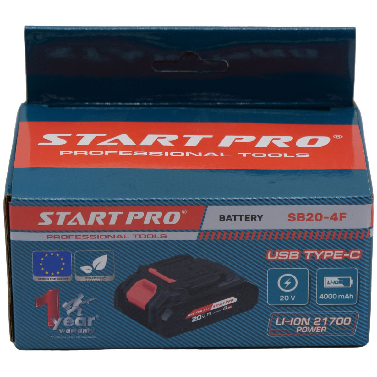 Аккумуляторная батарея 4,0 А·ч, 20 В Li-ion SB20-4F Start Pro 6386 (USB Type-C) - SB20-4F
