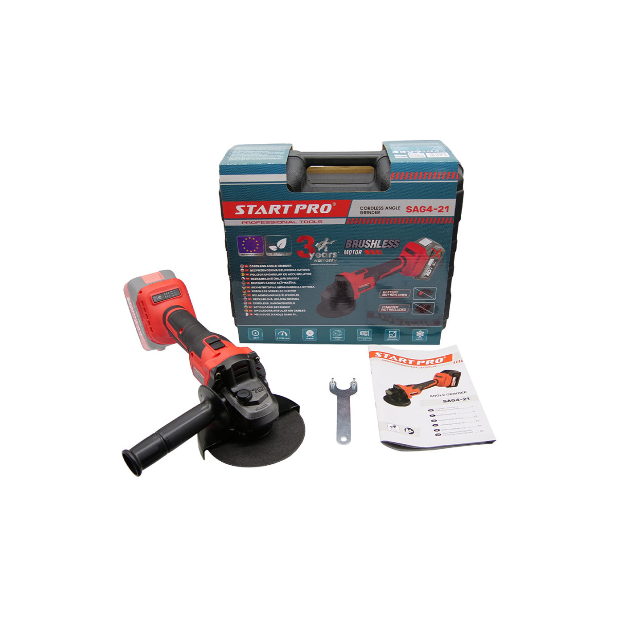 Угловая шлифмашина аккумуляторная 125 мм, 0–9000 об/мин Start Pro SAG4-21 (без АКБ) - SAG4-21