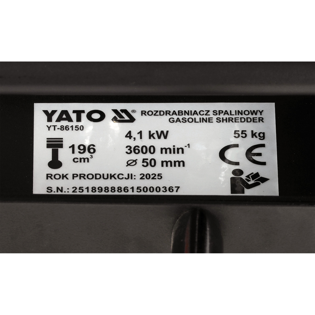 Измельчитель веток бензиновый YATO 4,1 кВт, двигатель 196 см3, для веток до Ø 50 мм, бак 3,6 л, контейнер 64 л YT-86150 - YT-86150