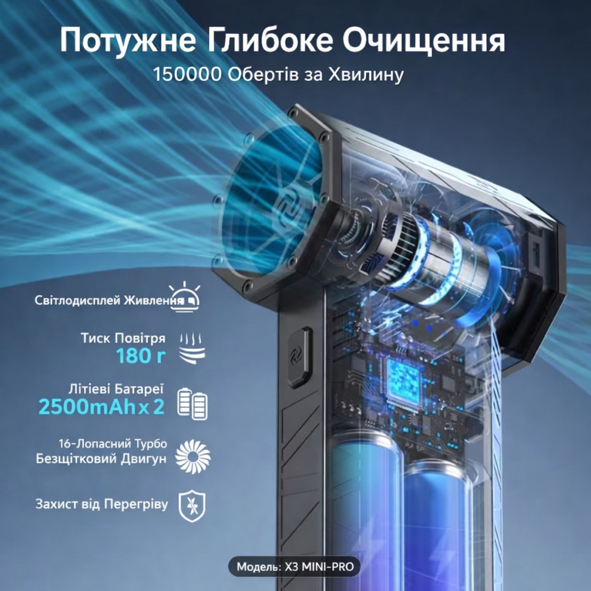 Турбовентилятор аккумуляторный X3 MINI PRO 150000 об/мин, 5000 мА·ч (JP11983654) - JP11983654