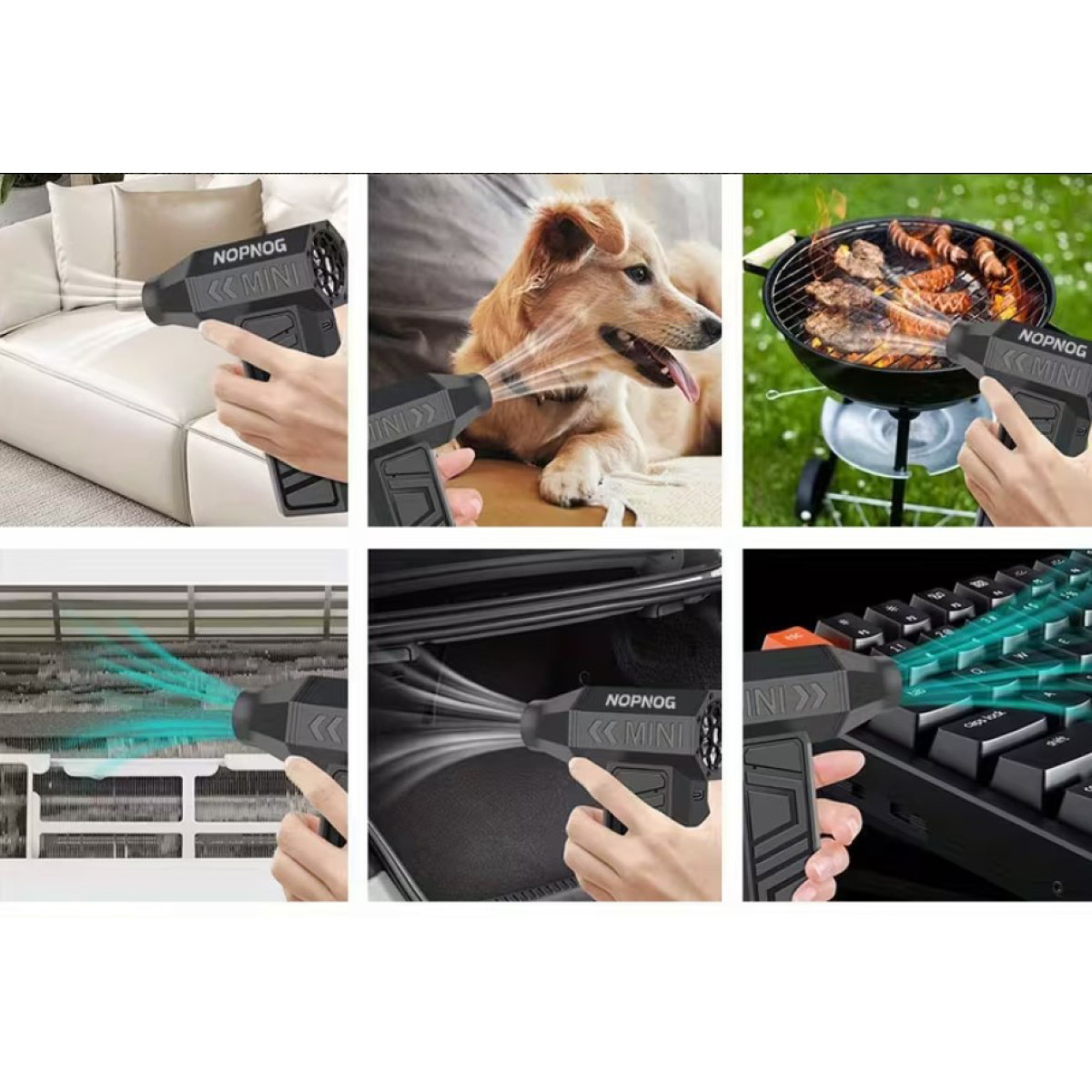 Мини турбовентилятор NOPNOG — это компактный и мощный портативный прибор для продувки, охлаждения и очистки. Благодаря с частотой вращения до устройство обеспечивает мощный поток воздуха при минимальном уровне шума.