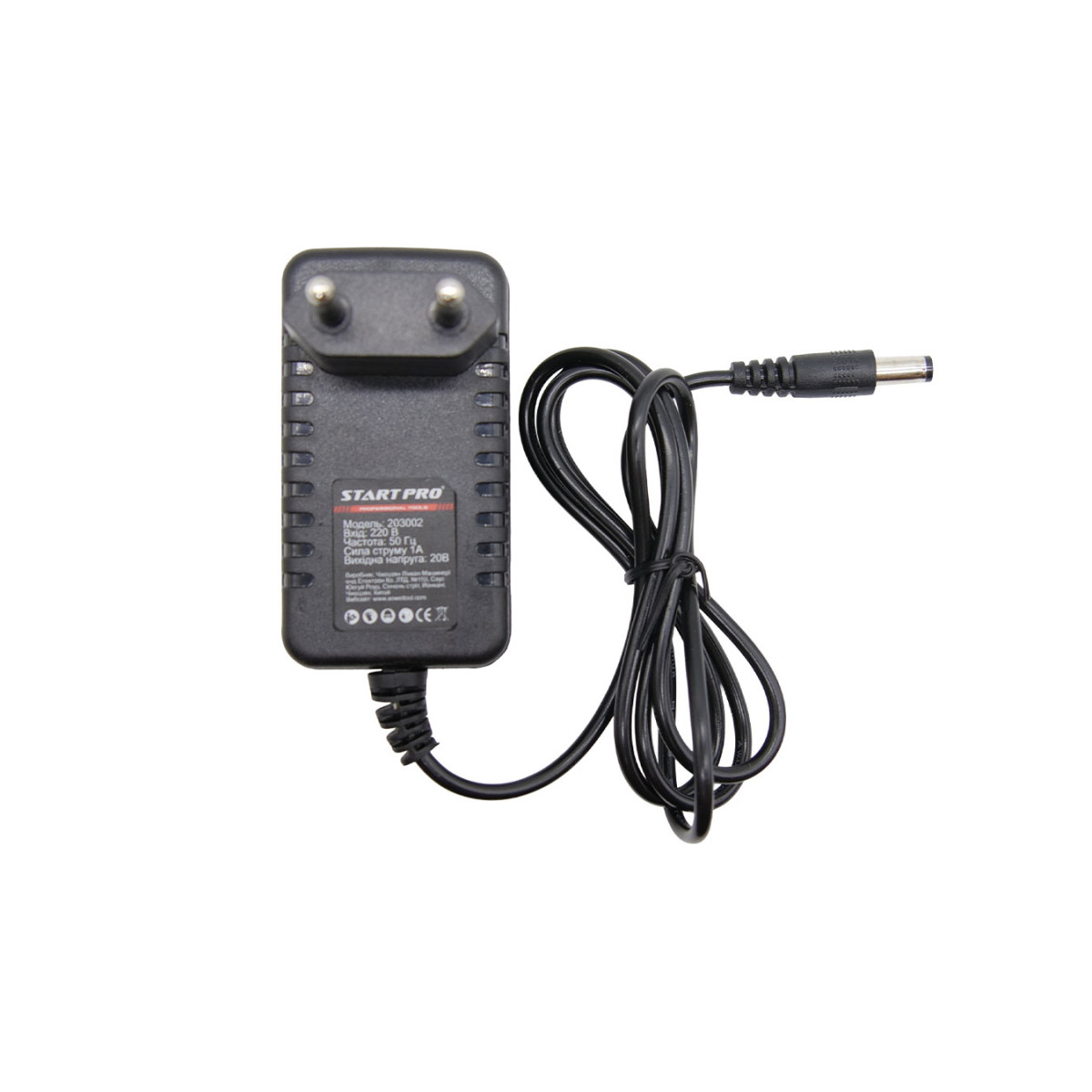 SC20-1AJ â компактное и удобное зарядное устройство в формате сетевого штекера, разработанное специально для работы с аккумуляторами линейки 20 V Max â ONE FOR ALL. Благодаря универсальному посадочному разъёму оно совместимо с широким спектром аккумуляторного инструмента Start Pro, что делает его практичным выбором как для домашнего, так и для профессионального использования. Технические особенности Устройство подключается к стандартной сети 220 В / 50 Гц и обеспечивает стабильное зарядное напряжение 20 В. Ток зарядки составляет 1 А, что оптимально для безопасного и достаточно быстрого заряда аккумуляторов. Длина кабеля 1,5 м позволяет удобно размещать зарядку без необходимости использования удлинителей. Преимущества Модель SC20-1AJ отличается простотой использования, высокой надёжностью и качественной сборкой. Универсальная совместимость с новой линейкой аккумуляторов делает её важной частью системы ONE FOR ALL, где один аккумулятор подходит ко многим инструментам. Производитель предоставляет 12 месяцев гарантии, подтверждая долговечность и стабильную работу устройства. Выбирая Start Pro SC20-1AJ, вы получаете надёжное зарядное устройство для эффективной работы с аккумуляторным инструментом. Выбирайте START PRO в Украине.