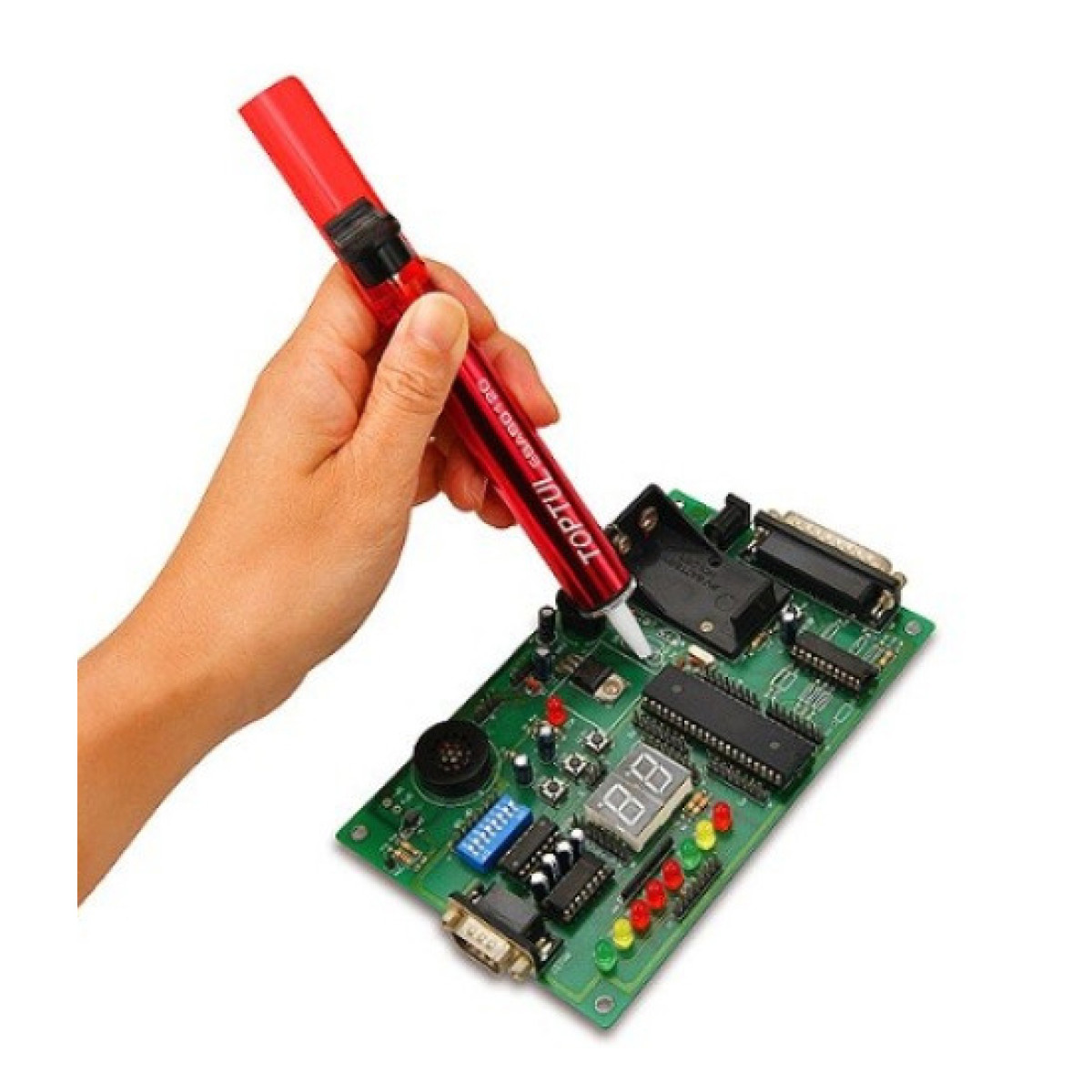 Помпа для удаления припоя оловоотсос предназначена для и удаления излишков расплавленного припоя во время пайки. Корпус из алюминиевого сплава обеспечивает и устойчивость к износу. Износостойкая тефлоновая насадка помогает работать и поддерживает стабильный контакт в зоне пайки. Мощный оловоотсос длиной удобно использовать одной рукой, что повышает и во время демонтажа и очистки контактов.