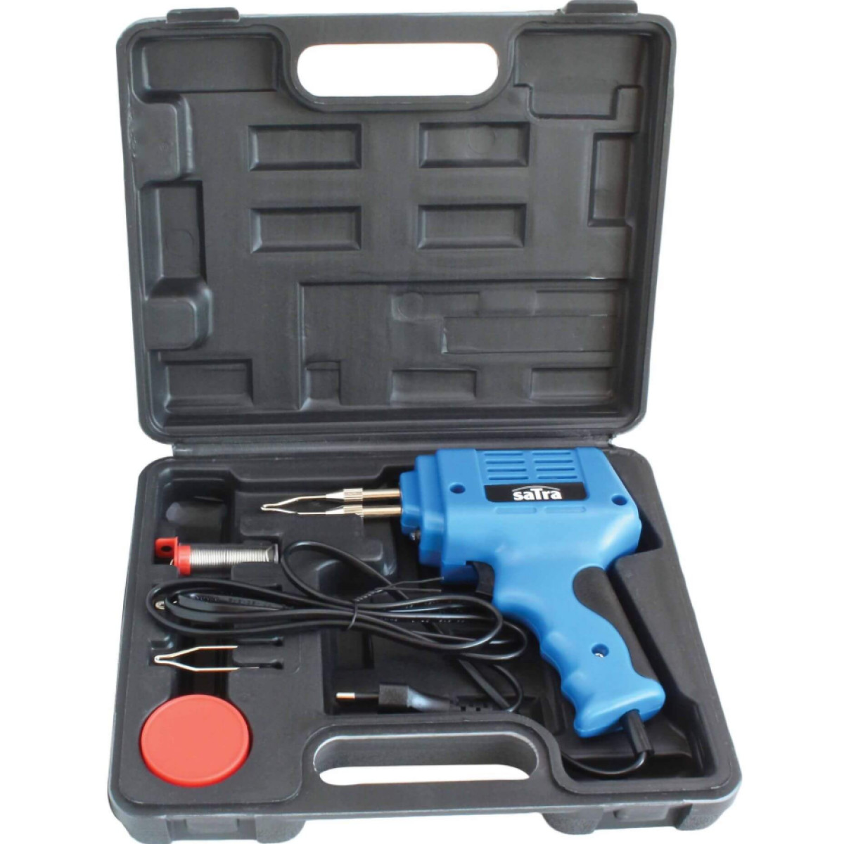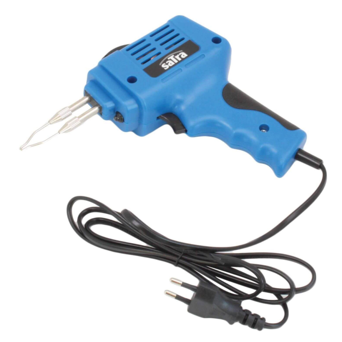ключевые слова: паяльный пистолет SATRA S-SG98C, импульсный паяльник 175W, паяльник для пластика дерева металла, электроинструмент для пайки, паяльник с быстрым нагревом