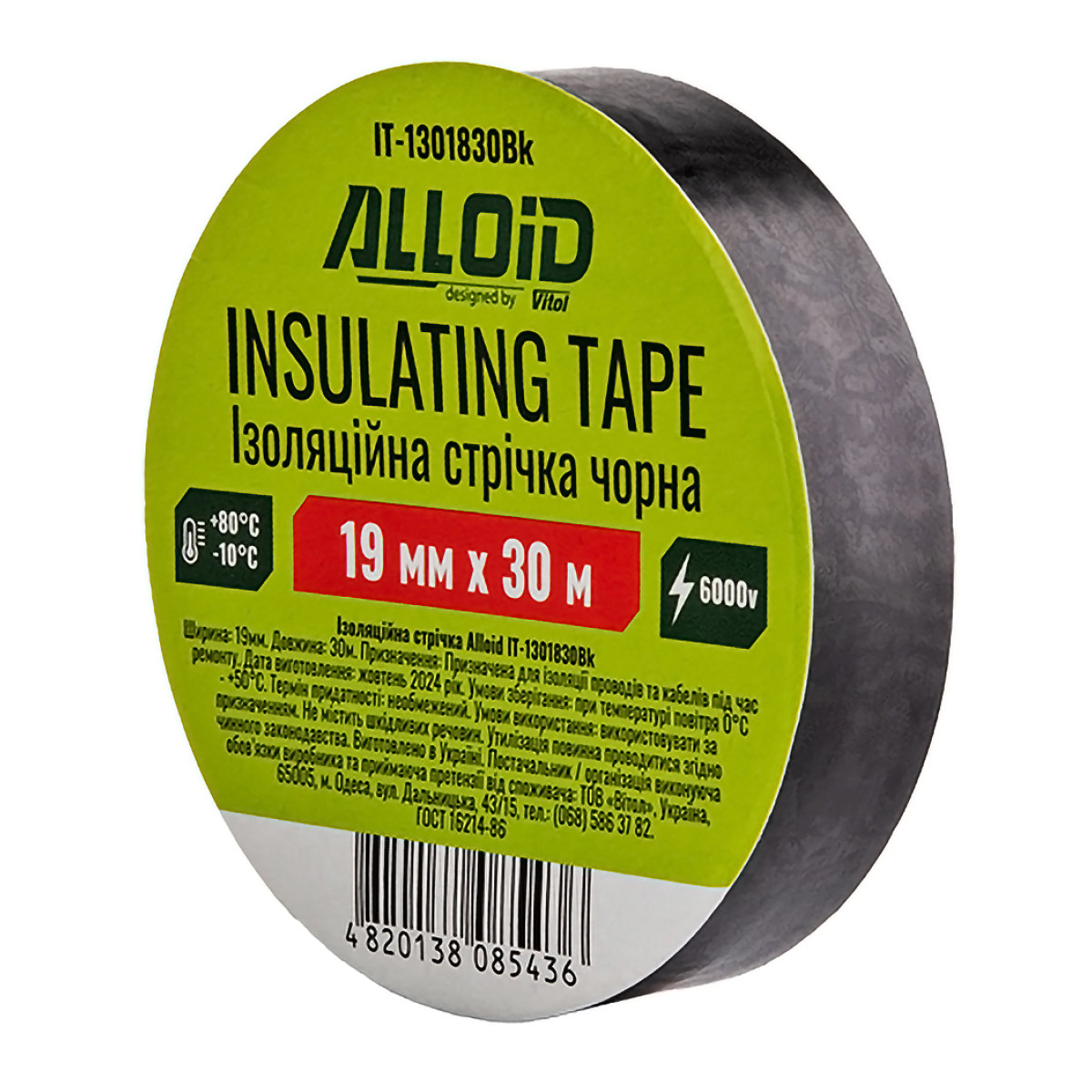 Изоляционная лента ПВХ 19мм × 30м,130мкм,черная. Alloid IT-1301830Bk - IT-1301830Bk