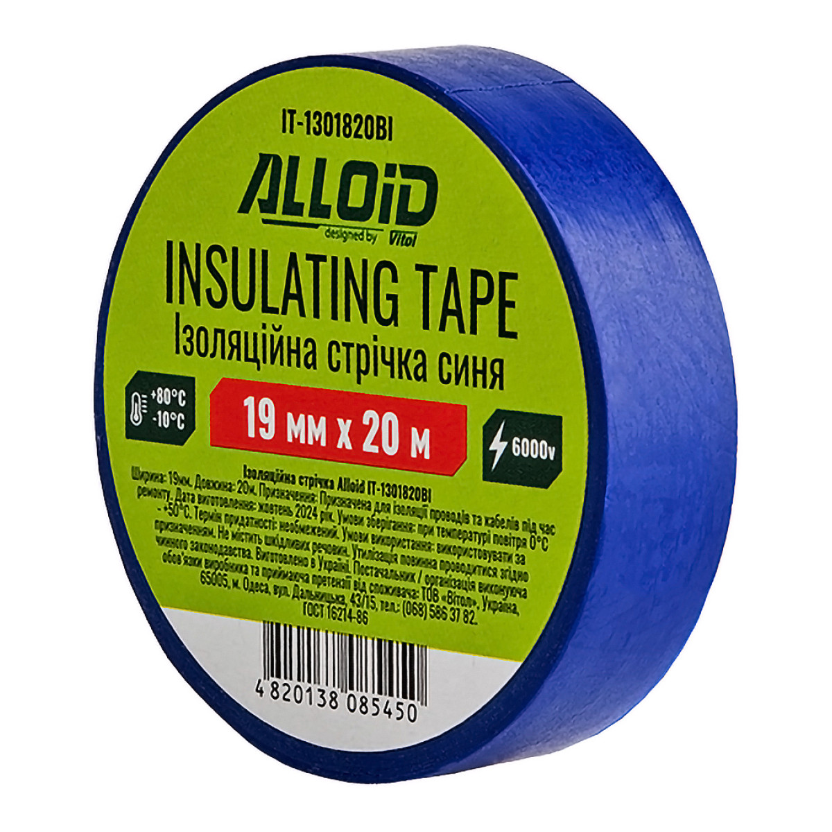 Лента изоляционная ПВХ 19мм × 20м,130мкм,синяя. Alloid IT-1301820Bl - IT-1301820Bl