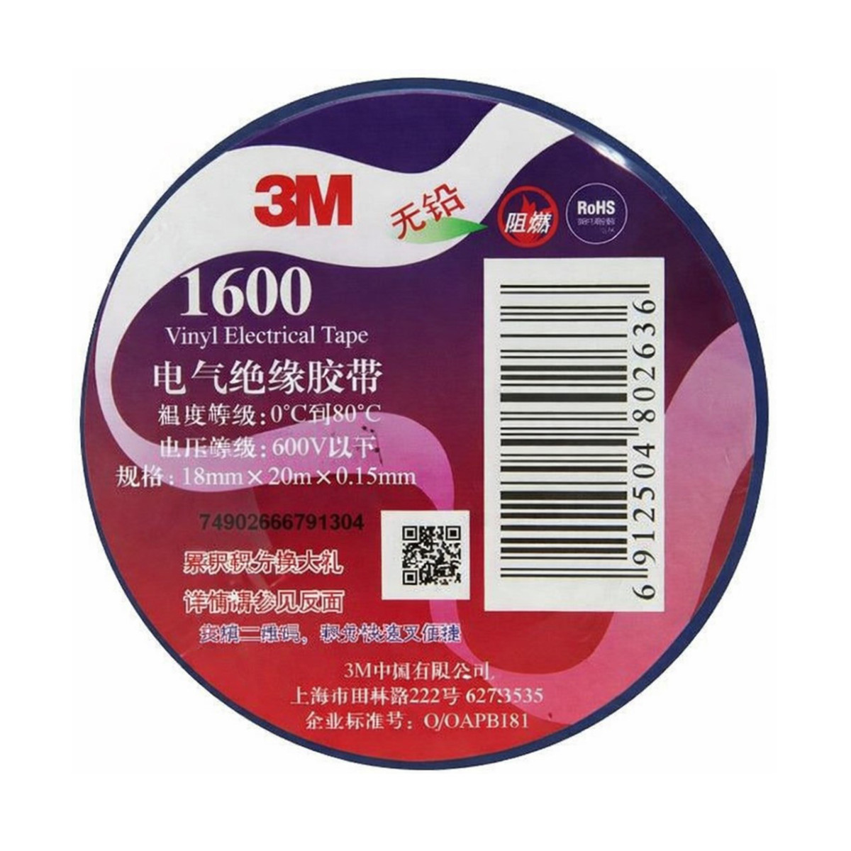 Изоляционная лента ПВХ 18мм × 20м × 0,15мм,синяя. 3M 1600 (Blue) - 3М 1600 (Blue)