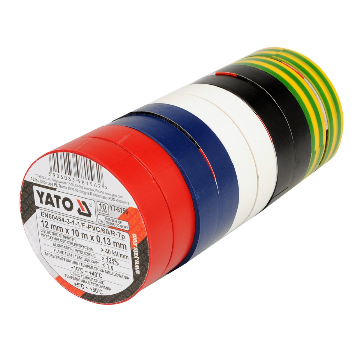 Набор изоляционных лент ПВХ 12мм × 10м × 0,13мм,5 цветов,10шт. YATO YT-8156 - YT-8156