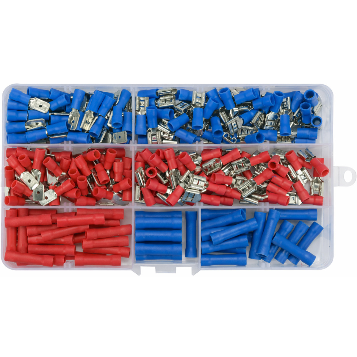 Набор электрических разъемов с изоляцией и клеммами - комплексное решение для при электромонтажных работах. Подходит для применения в легковых автомобилях, грузовиках и строительной технике, а также будет полезен электрикам, механикам и мастерам В наборе элементов: штекерные, гнездовые и трубчатые соединители. Контактная часть выполнена из латуни, а изоляция из, что обеспечивает и . Все элементы надежно размещены в практичном футляре, который гарантирует и к нужным позициям. Соединения получаются прочными и снижают риск случайного обрыва цепи.