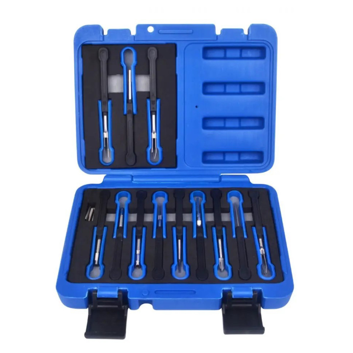 Набор инструментов для разъединения контактов на является расширенным комплектом для в электрических системах автомобиля. Набор позволяет , упрощая техническое обслуживание и ремонт. Инструменты имеют разные профили резцов, включая , что обеспечивает универсальность для разных типов разъёмов. Комплект изготовлен из и поставляется в с для удобной идентификации отсутствующих инструментов. Три рукоятки имеют для работы с круглыми разъёмами. Набор совместим с автомобилями марок .