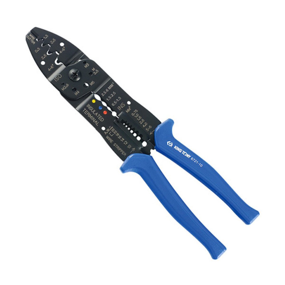 Клещи 248мм для зачистки,обрезки и обжима клемм (до 6мм²). KING TONY 6721-10 - 6721-10