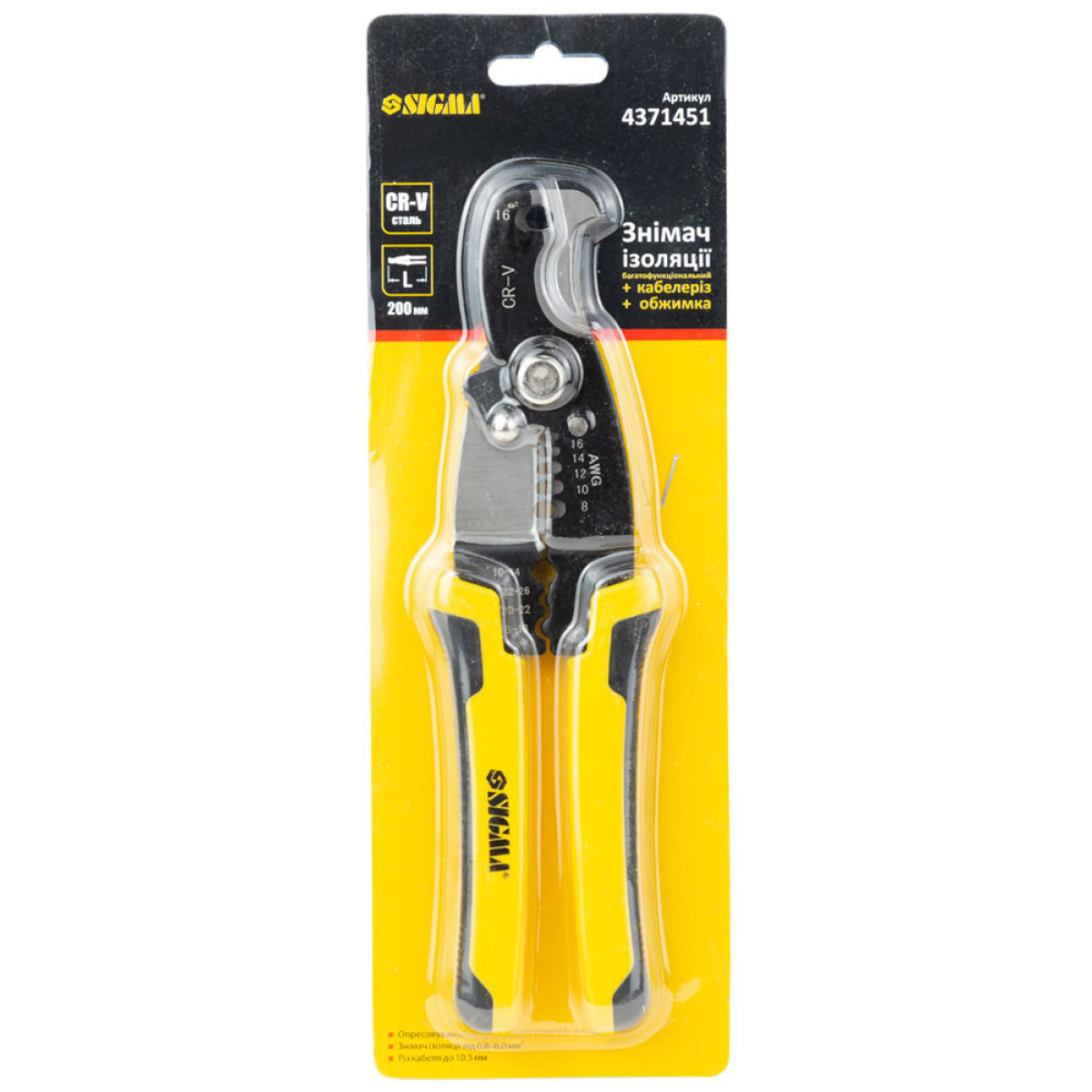Съёмник изоляции многофункциональный + кабелерез + обжим,200мм.SIGMA 4371451 - 4371451