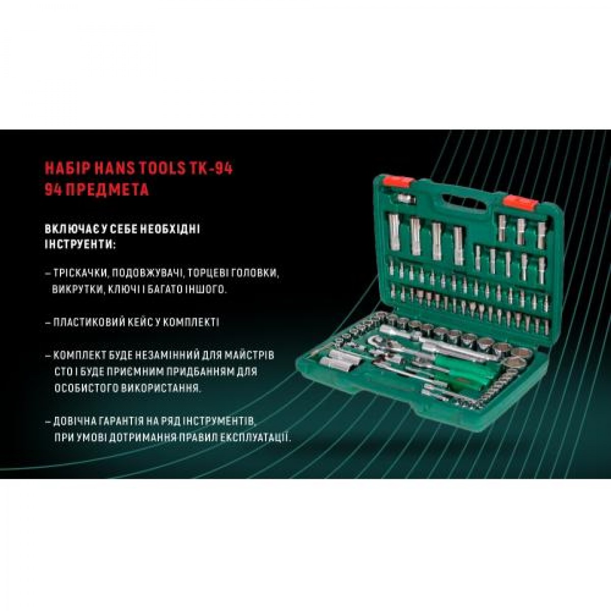 HANS. Набор торц. головок 1/4"DR4-14мм и 1/2"DR10-32 мм,94 предм.(6гран.) (TK-94) - TK-94