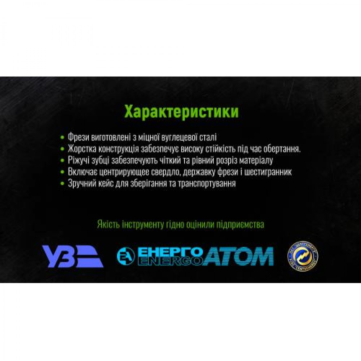 свердло центруюче, державка фрези, шестигранник, коронки, кейс