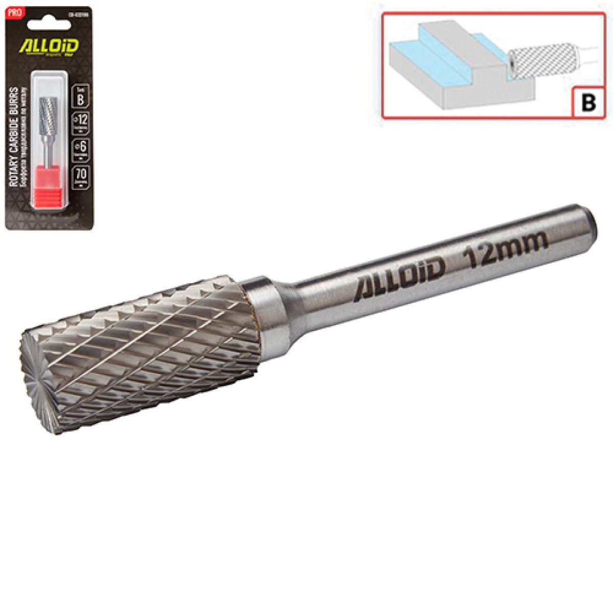 Борфреза твердосплавная по металлу Alloid Pro , тип B, D-12мм, d-6мм, L-70мм - CB-63219B