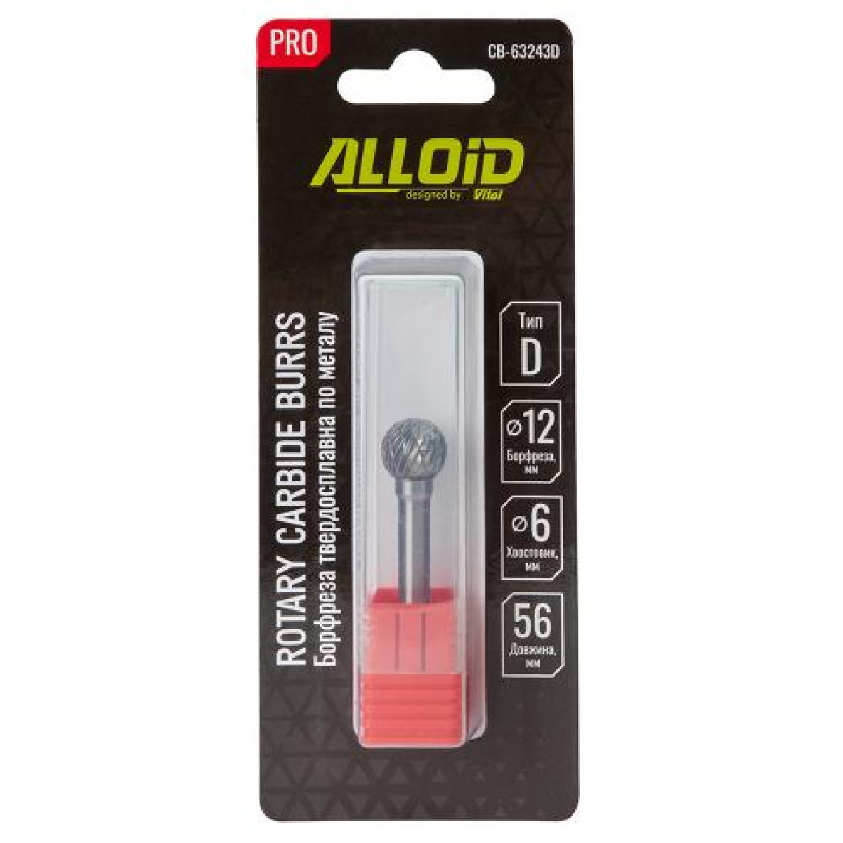 Борфреза твердосплавная по металлу Alloid Pro , тип D, D-12мм, d-6мм, L-56мм - CB-63243D