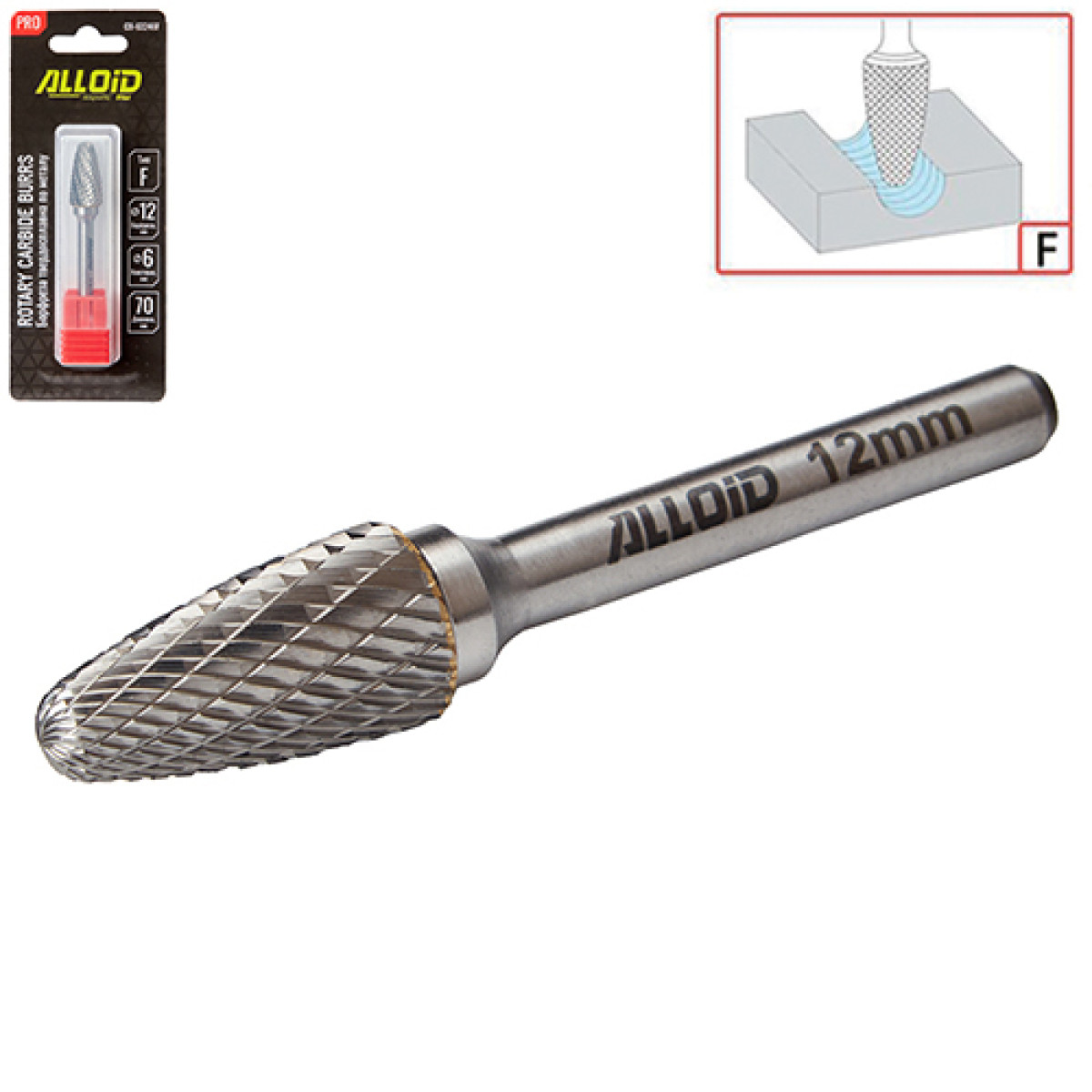 Борфреза твердосплавная по металлу Alloid Pro , тип F, D-12мм, d-6мм, L-70мм - CB-63246F