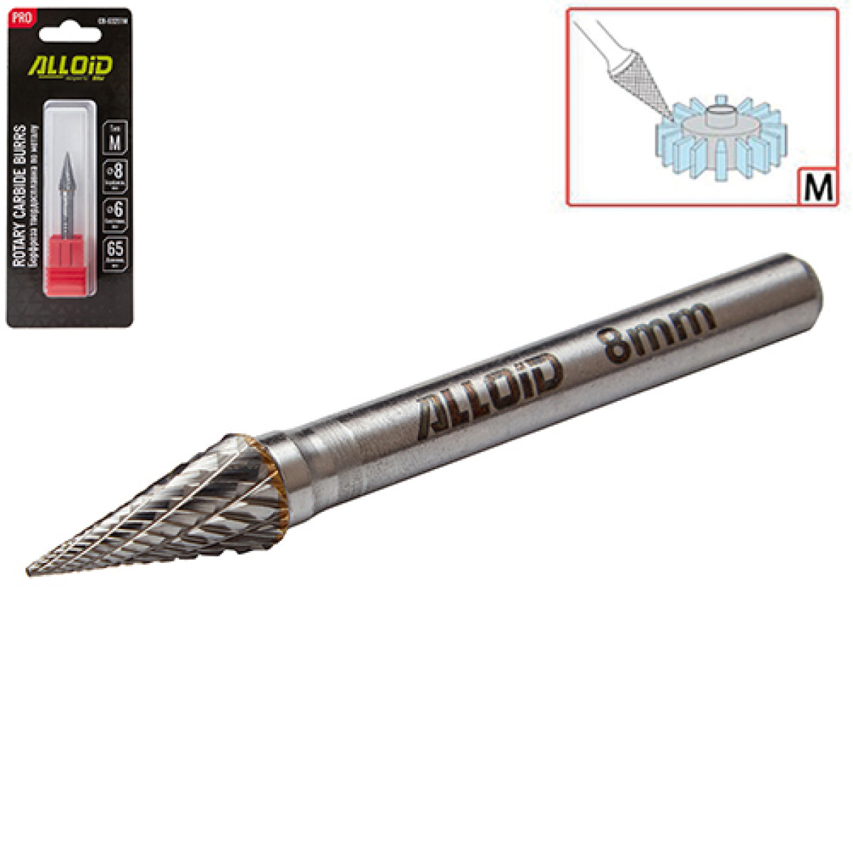 Борфреза твердосплавная по металлу Alloid Pro , тип M, D-8мм, d-6мм, L-65мм - CB-63251M
