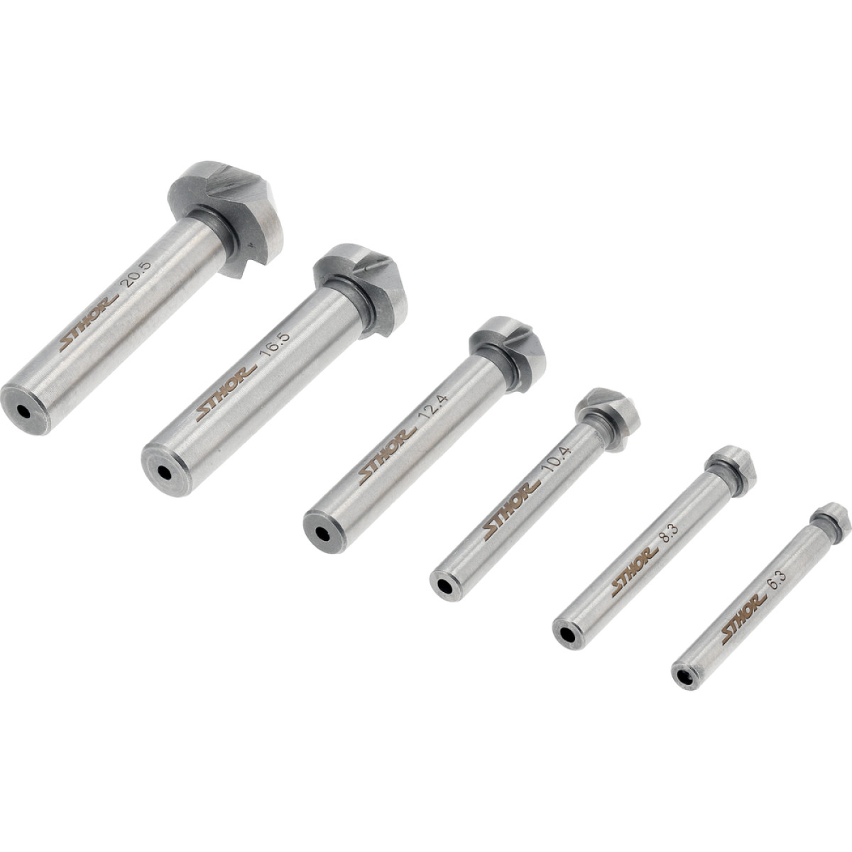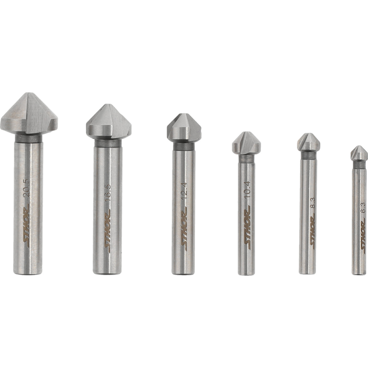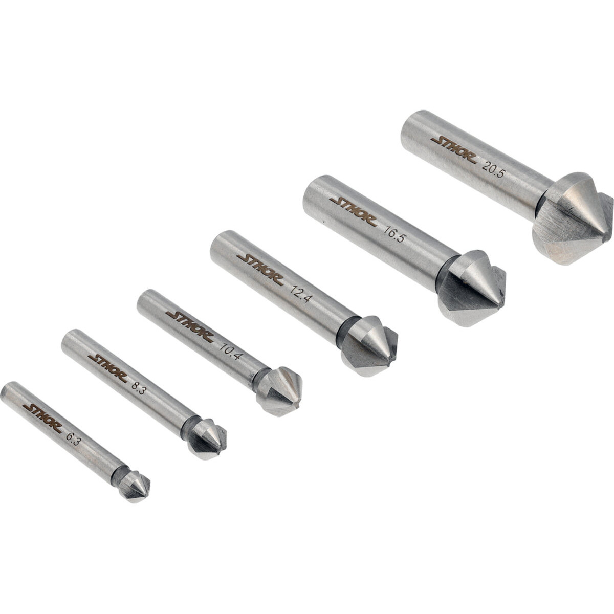 Набір зенкерів конічних по металу з 2 різьцями STHOR: Ø= 6,3- 20,5 мм, l= 37- 47 мм, HSS 4241, 6 шт - 22710