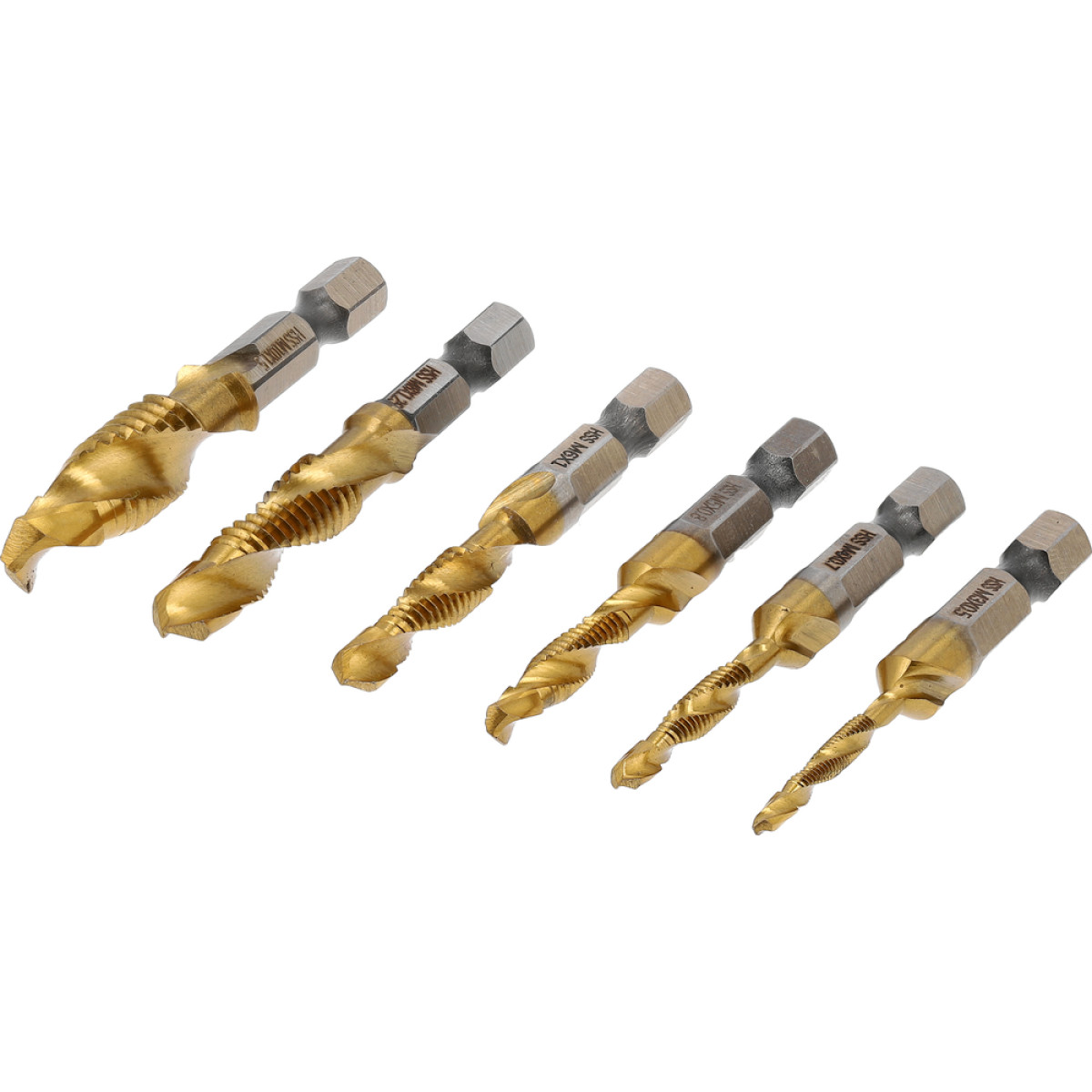 Набор сверл-метчиков по металлу STHOR 24200, HSS 4241, TiN, 1/4", М3–М10, 6 шт - 24200