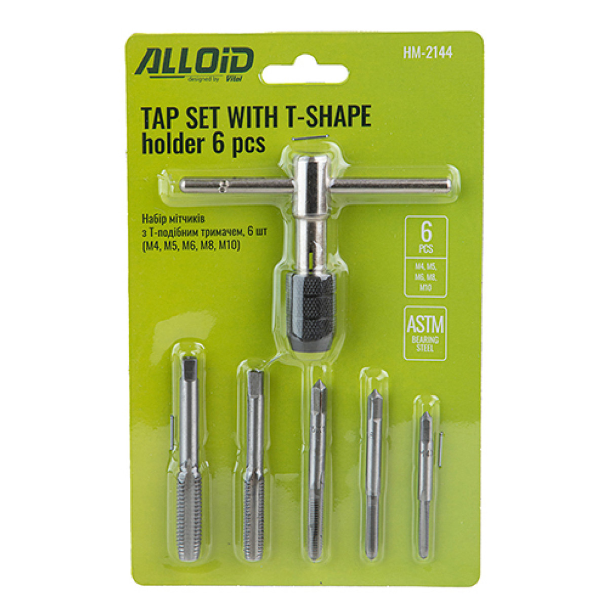 Набор метчиков с Т-образным держателем (M4,M5,M6,M8,M10). Alloid HM-2144 - НМ-2144