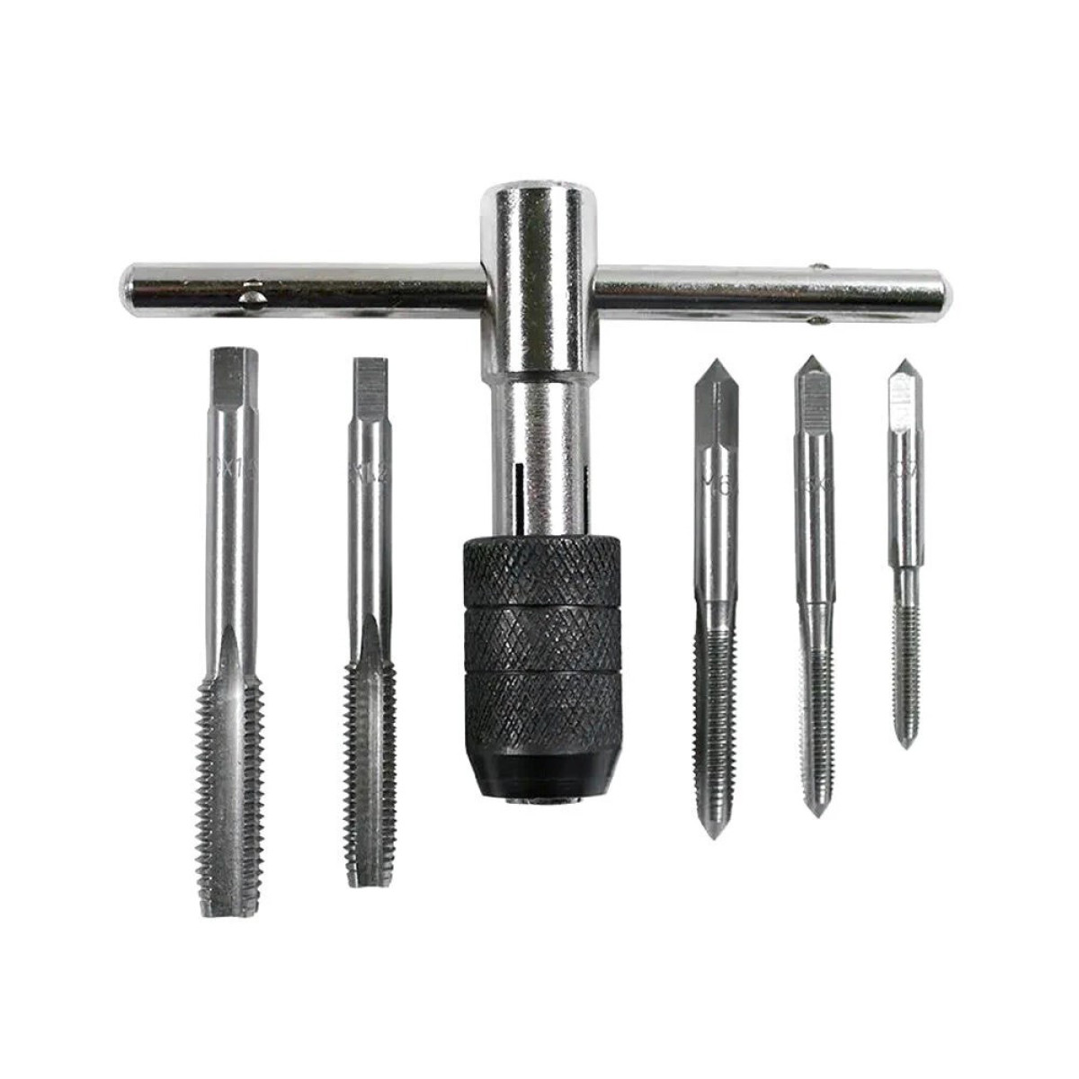 Набор метчиков используется для нарезания внутренней метрической резьбы по металлу, алюминию и другим материалам.Изготовлен из прочной инструментальной стали , что обеспечивает точность, долговечность и устойчивость к износу.Содержит 5 метчиков разных размеров и один быстрозажимной вороток для удобной ручной работы.Подходит для сквозных и глухих отверстий.