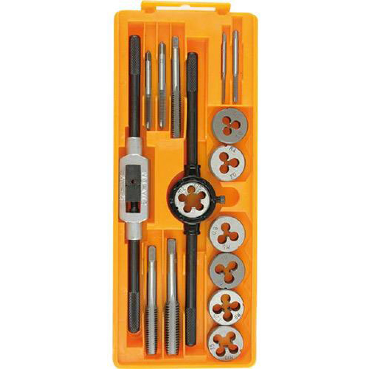 Набор предназначен для нарезки и восстановления наружной и внутренней резьбы.Рабочие части выполнены из прочной стали, устойчивой к износу и механическим воздействиям.Все элементы набора удобно размещены в пластиковом кейсе для хранения и транспортировки.Диапазон резьбы .