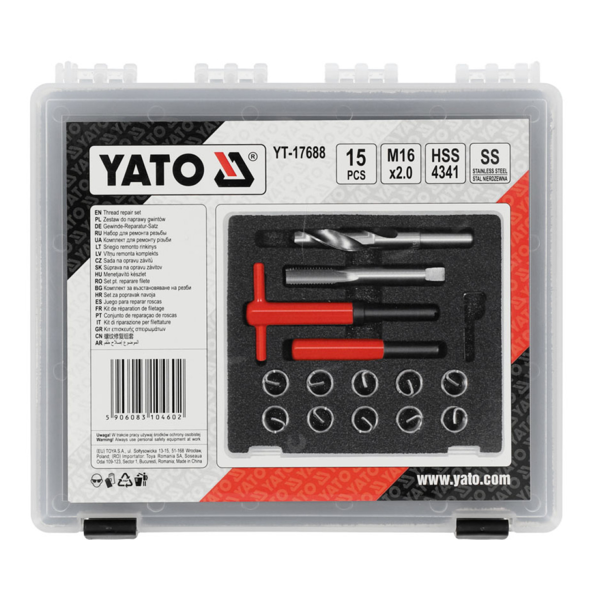 Инструмент для восстановления резьбы (М16×2.0),15 предметов. YATO YT-17688 - YT-17688