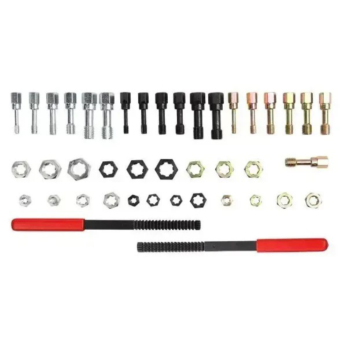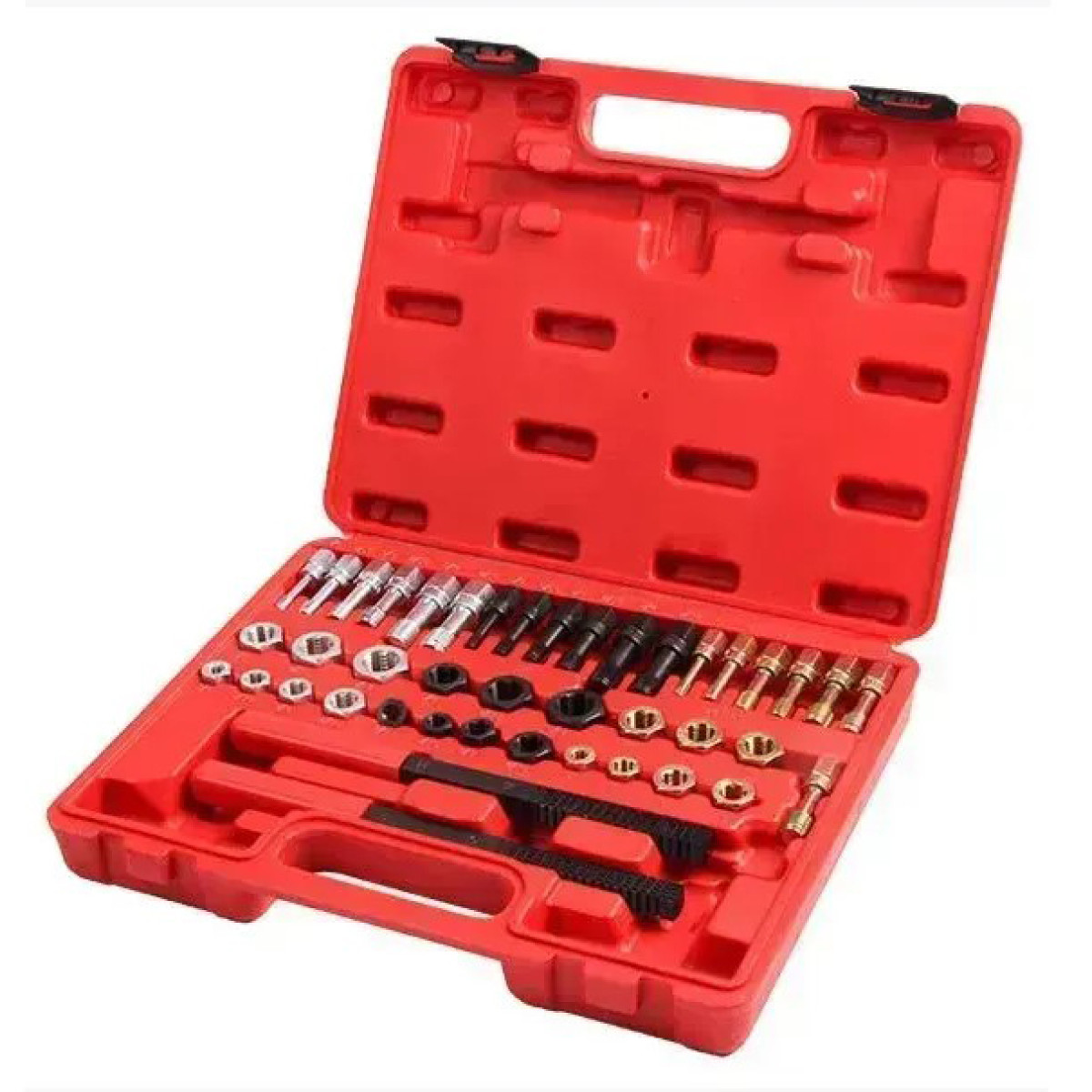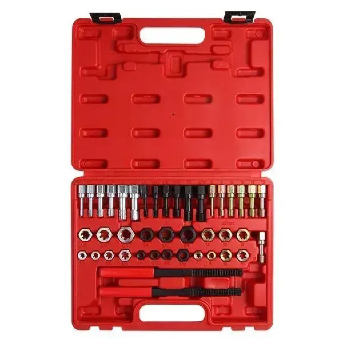 Набор предназначен для восстановления повреждённой, изношенной или сорванной резьбы на внутренних и внешних болтах и шпильках. Подходит для обслуживания автомобилей, ремонта промышленного оборудования и других механических работ. Может использоваться со стандартными гаечными ключами. Комбинация инструментов для делает этот комплект универсальным решением для профессионального и бытового применения.