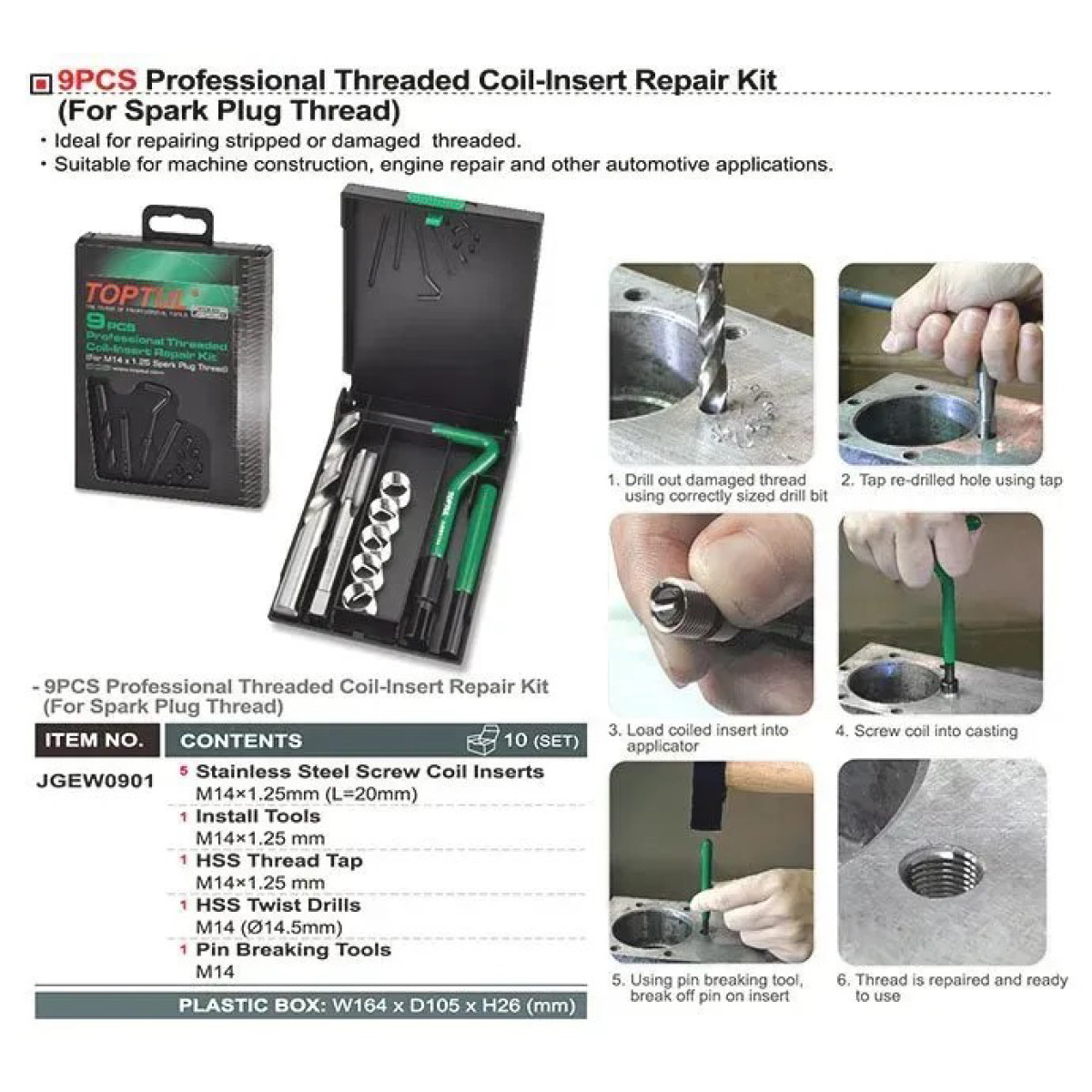 Набор для восстановления резьбы свечных отверстий (М14×1.25),9ед. TOPTUL JGEW0901 - JGEW0901