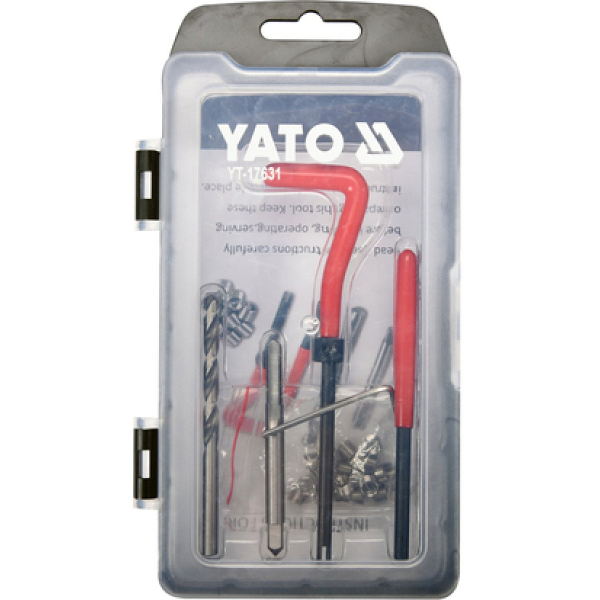 Набор для восстановления резьбы YATO YT-17631 предназначен для ремонта повреждённых внутренних резьбовых соединений типа M5×0,8 мм.Позволяет восстановить резьбу до оригинального размера путём установки спиральных вставок из нержавеющей стали, обеспечивающих прочность и долговечность соединения.Инструменты изготовлены из высококачественной быстрорежущей стали HSS, что гарантирует точность и надёжность работы. Комплект идеально подходит для ремонтных мастерских, СТО и домашнего использования.