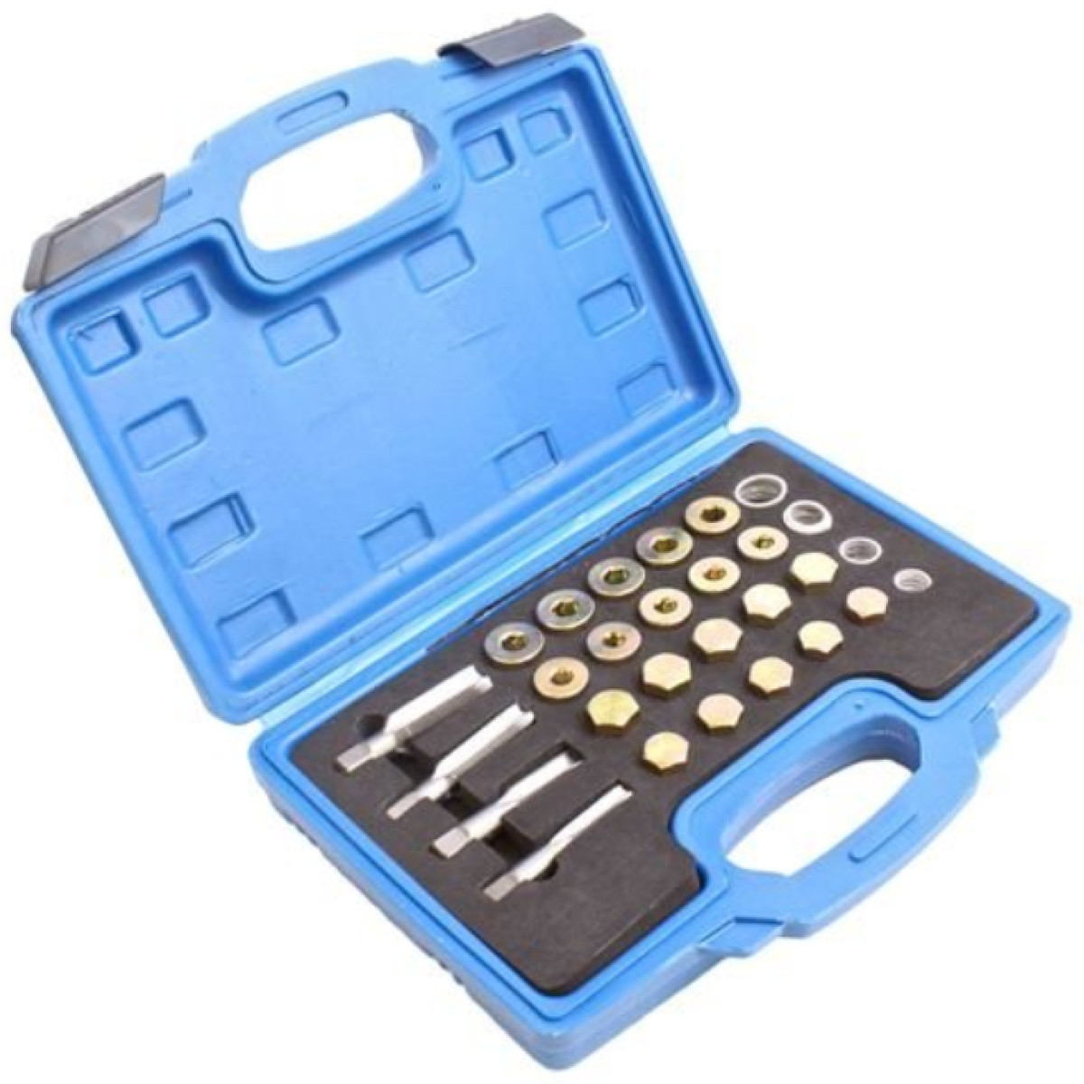 Профессиональный набор ASTA A-90009 предназначен для восстановления повреждённой резьбы масляных пробок в поддонах картера двигателя, редукторах и дифференциалах. Комплект позволяет быстро и надёжно восстановить резьбовое соединение без замены дорогостоящих деталей.