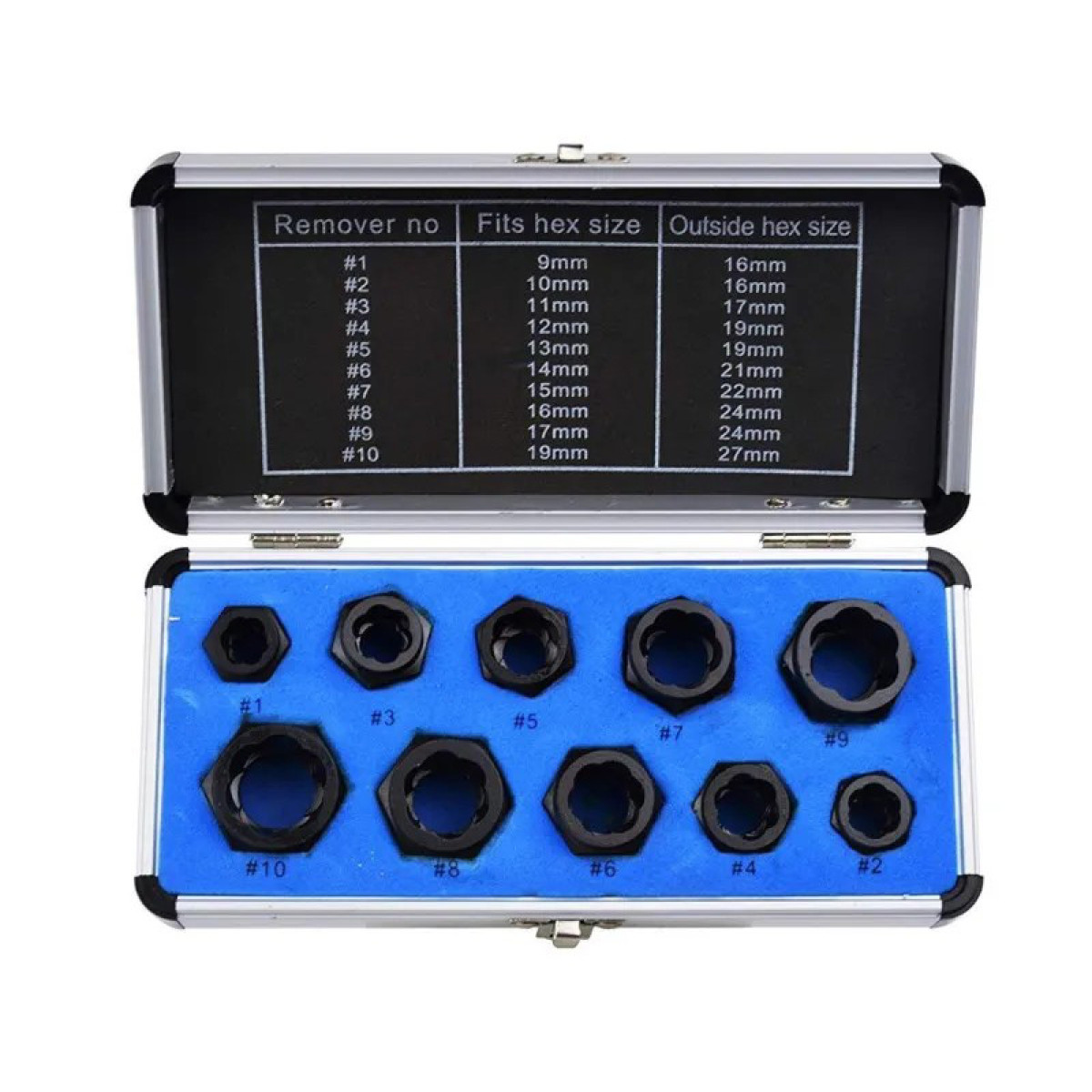 Набор для выкручивания сорванных гаек (9–19мм),10 предметов. GEKO G30032 - G30032