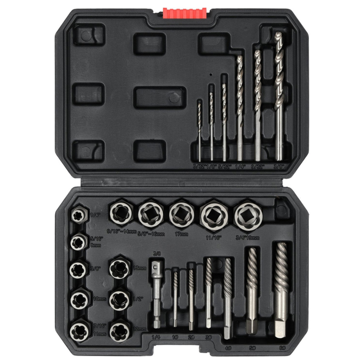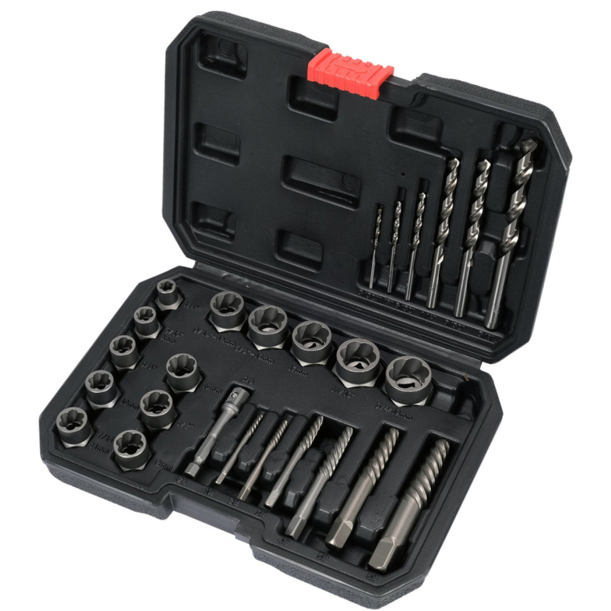 В комплект входят , которые позволяют эффективно удалять закисшие или деформированные элементы без повреждения резьбы. Инструменты изготовлены из , обеспечивающих . Рассчитан для работы с держателем . Подходит для , а также для домашнего использования.