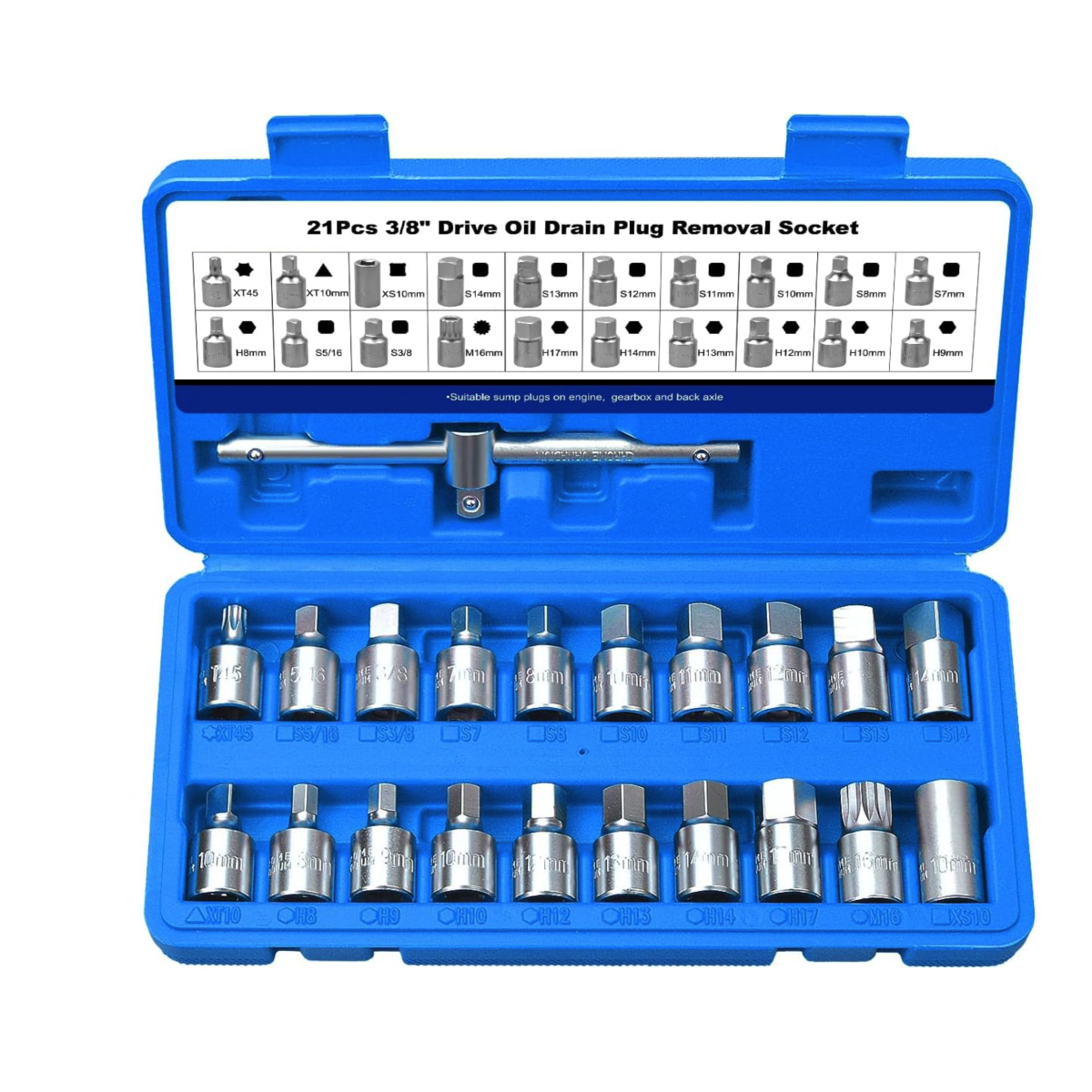 Профессиональный набор REWOLT T1586 предназначен для снятия и установки сливных пробок поддонов двигателя, коробки передач и задних мостов. Благодаря широкому набору профилей подходит для обслуживания большинства современных автомобилей.