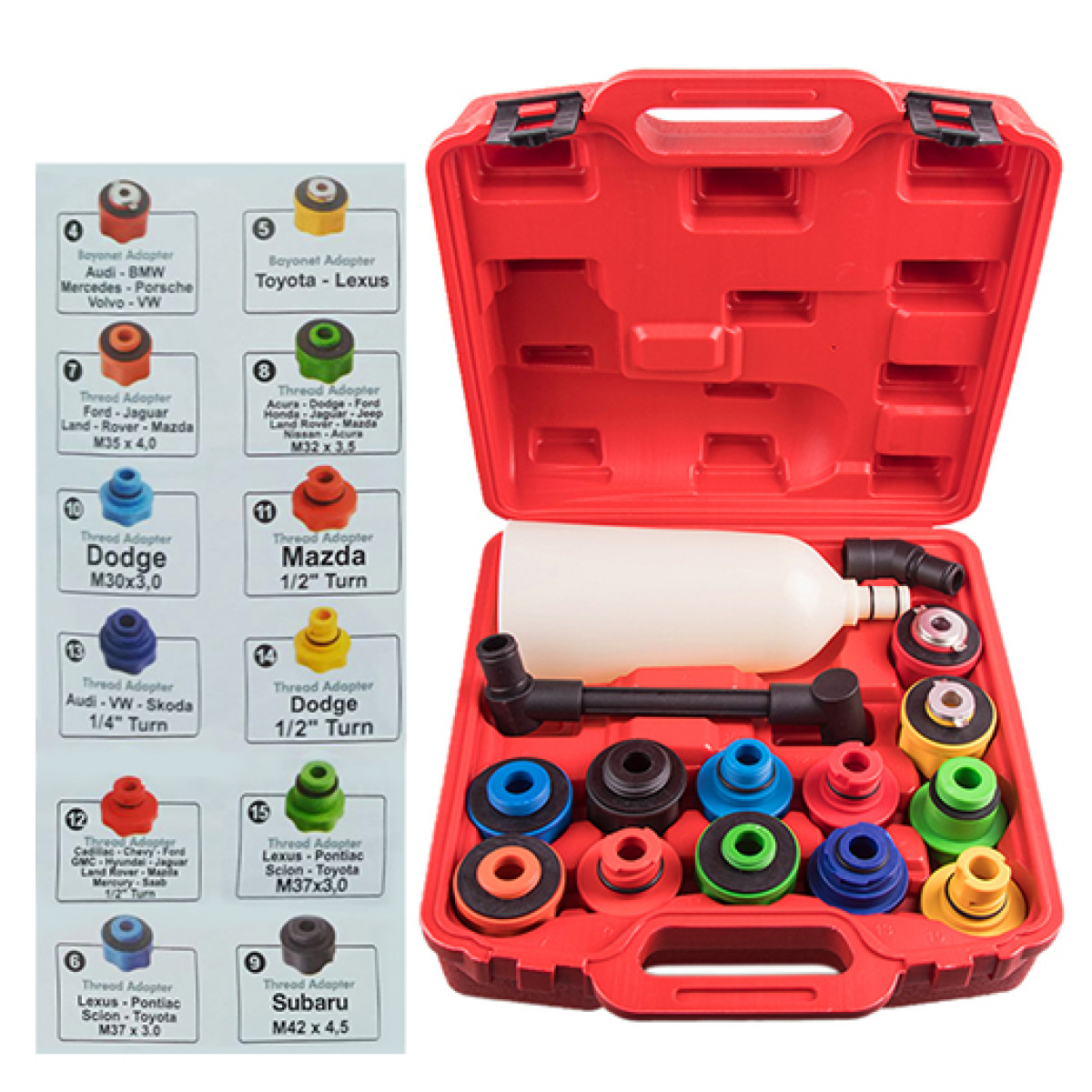 Набор - это в различные типы двигателей. Комплект относится к серии , предназначенной для . Благодаря , он обеспечивает , включая и другие. и позволяют без проливов. Цветовая маркировка адаптеров облегчает использование, а обеспечивает .