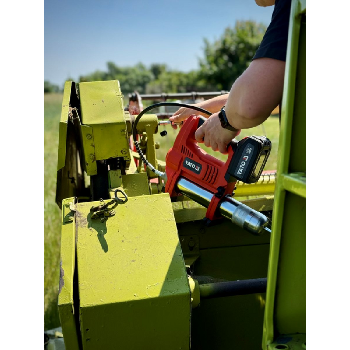 шприц смазочный YATO YT-07020, аккумуляторный шприц 18 В, шприц для смазки 62 МПа, смазочный пистолет 600 г, YATO 18V