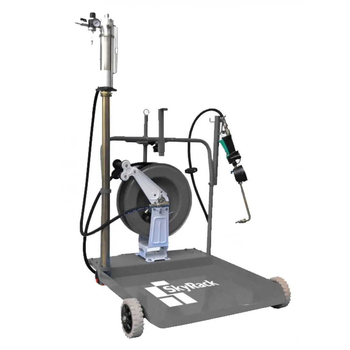 Пневматическая маслораспределительная установка SkyRack SR-305 предназначена для быстрой, стабильной и точной подачи масла, смазочных материалов и технических жидкостей на СТО, сервисах и промышленных предприятиях. Установка оснащена пневматическим насосом, раздаточным пистолетом с электронным табло, а также тележкой для бочек 180–220 кг, что обеспечивает удобство передвижения и работы. В комплект входит катушка с рукавом длиной 10 м, позволяющая работать на удалении от бочки без её перемещения. Система обеспечивает стабильное давление, точный контроль выдачи и высокую производительность 15 л/мин.