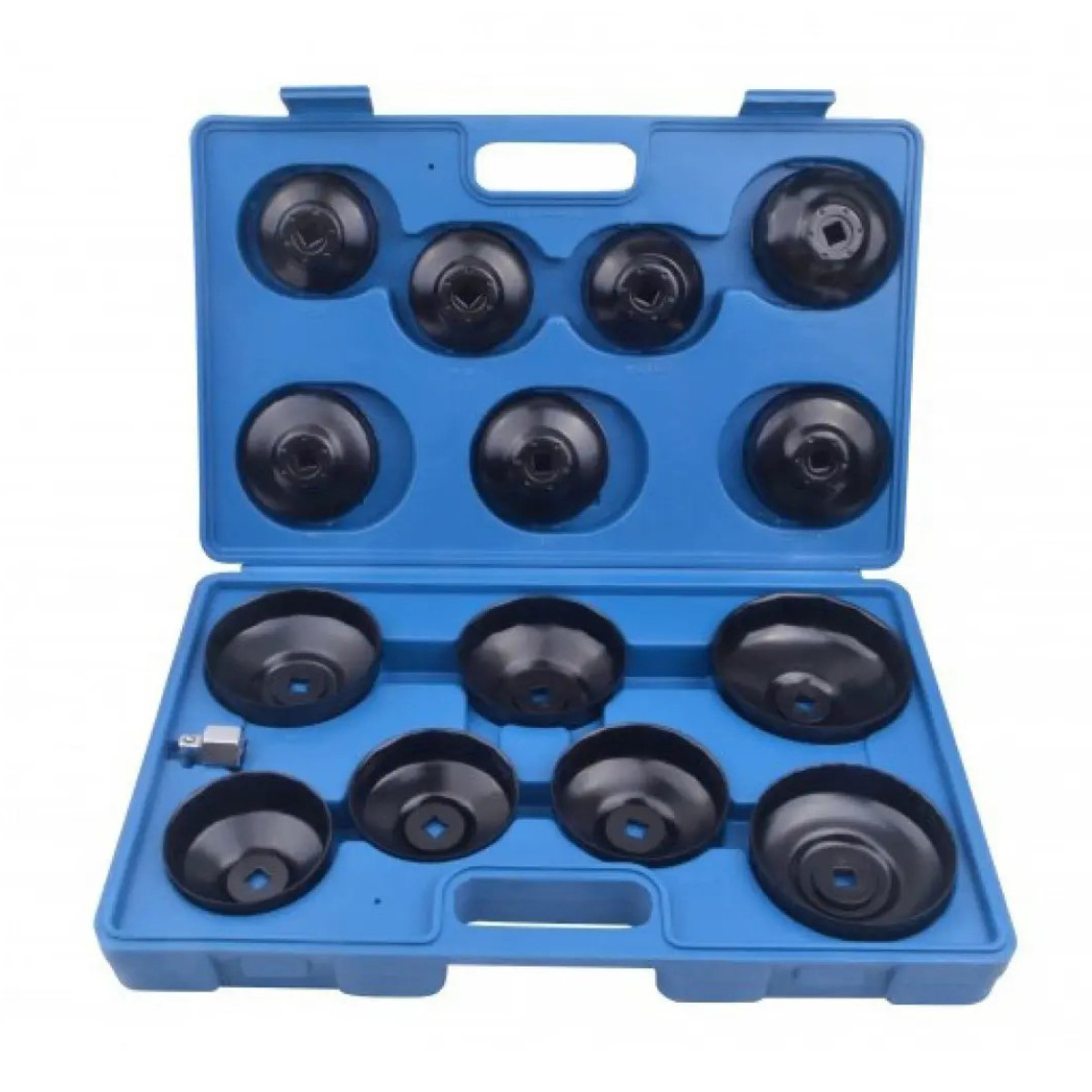 Набір чашкових знімачів масляних фільтрів QUATROS QS60037 - це професійний комплект із 15 предметів, що включає 14 металевих чашок та адаптер для використання з різними типами приводів. Чашкова конструкція забезпечує щільне охоплення масляного фільтра, мінімізуючи ризик пошкодження та зісковзування під час демонтажу. Усі елементи виготовлені з міцної інструментальної сталі та мають розміри, сумісні з великою кількістю автомобілів. Набір стане оптимальним рішенням для автосервісів,СТО та професійної майстерні.