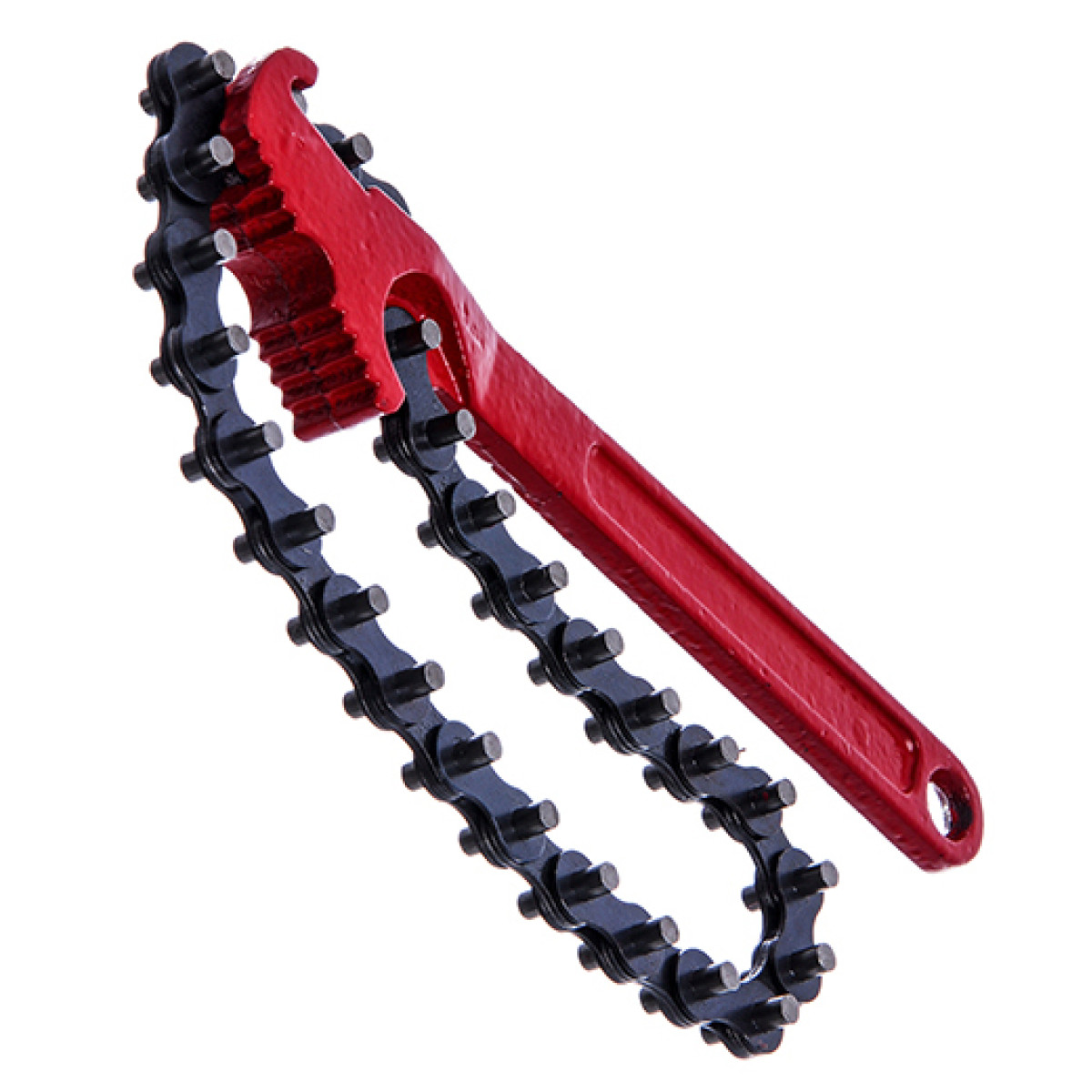 Цепной фильтросъёмник с металлической ручкой предназначен для при техническом обслуживании автомобиля. Длина цепи позволяет работать с фильтрами разного диаметра, а цепной механизм обеспечивает даже при сильной затяжке. Металлическая рукоятка гарантирует , инструмент удобен для применения на