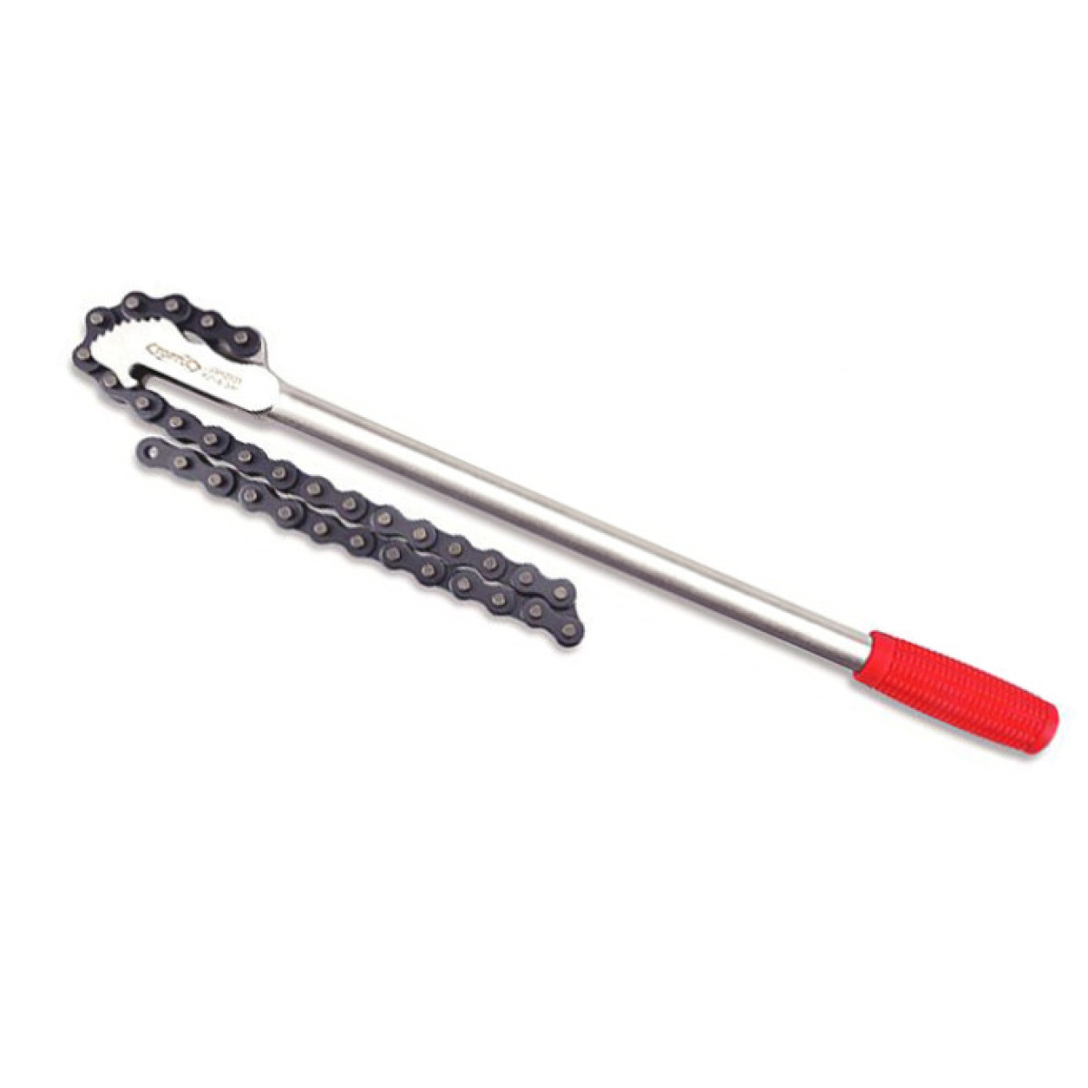 Съёмник масляного фильтра цепной предназначен для диаметром . Высокопрочная термообработанная цепь обеспечивает , а зазубренные губки создают . Длинная стальная ручка даёт для работы с прикипевшими фильтрами и большими трубами. Рукоятка из стали выдерживает высокие нагрузки, а мягкое покрытие улучшает хват и уменьшает усталость рук. Инструмент также подходит для .