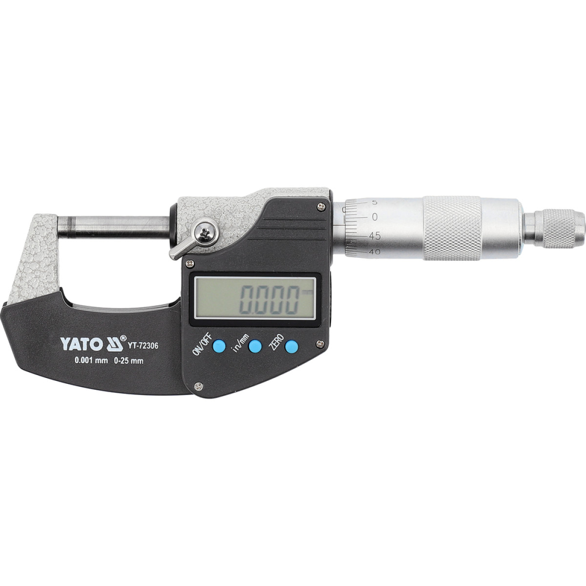 Микрометр YATO YT-72306 с LCD цифровой шкалой, диапазон 0–25 мм, точность 0,001 мм - YT-72306