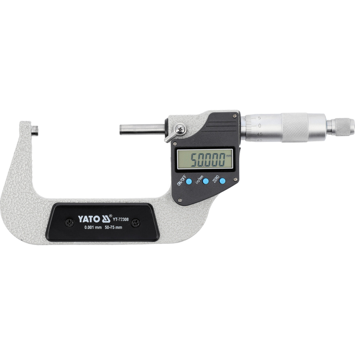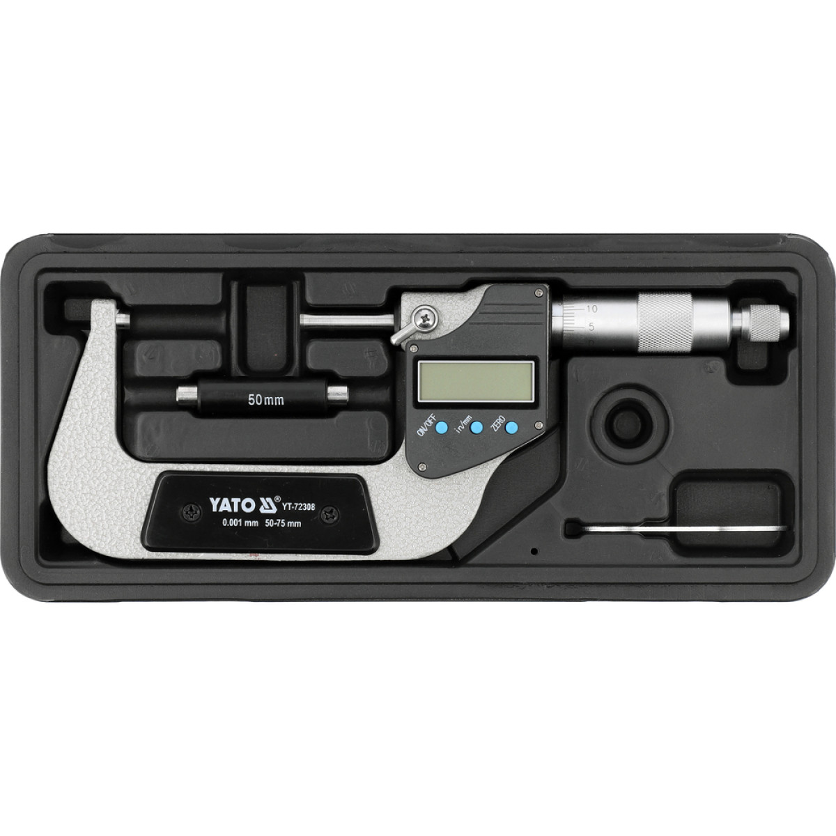 Микрометр YATO YT-72308 с LCD цифровой шкалой, диапазон 50–75 мм, точность 0,001 мм - YT-72308